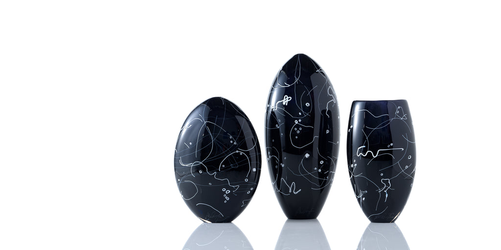 Step into a world of radiant glass artistry, where Peter Layton's masterful creations await their perfect home. Discover the latest treasures in a variety of series, each piece a symphony of colour, handcrafted to bring beauty to your space.