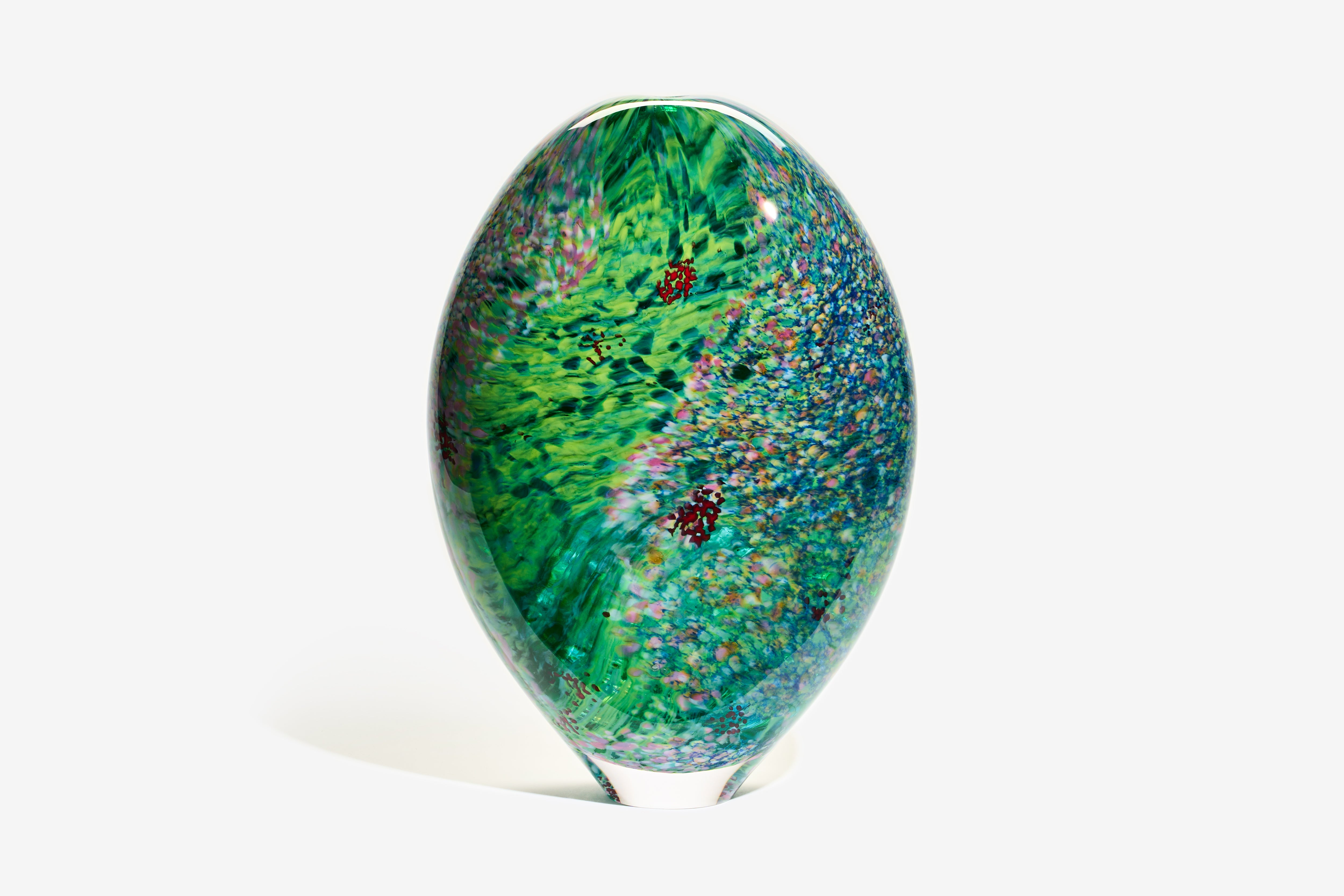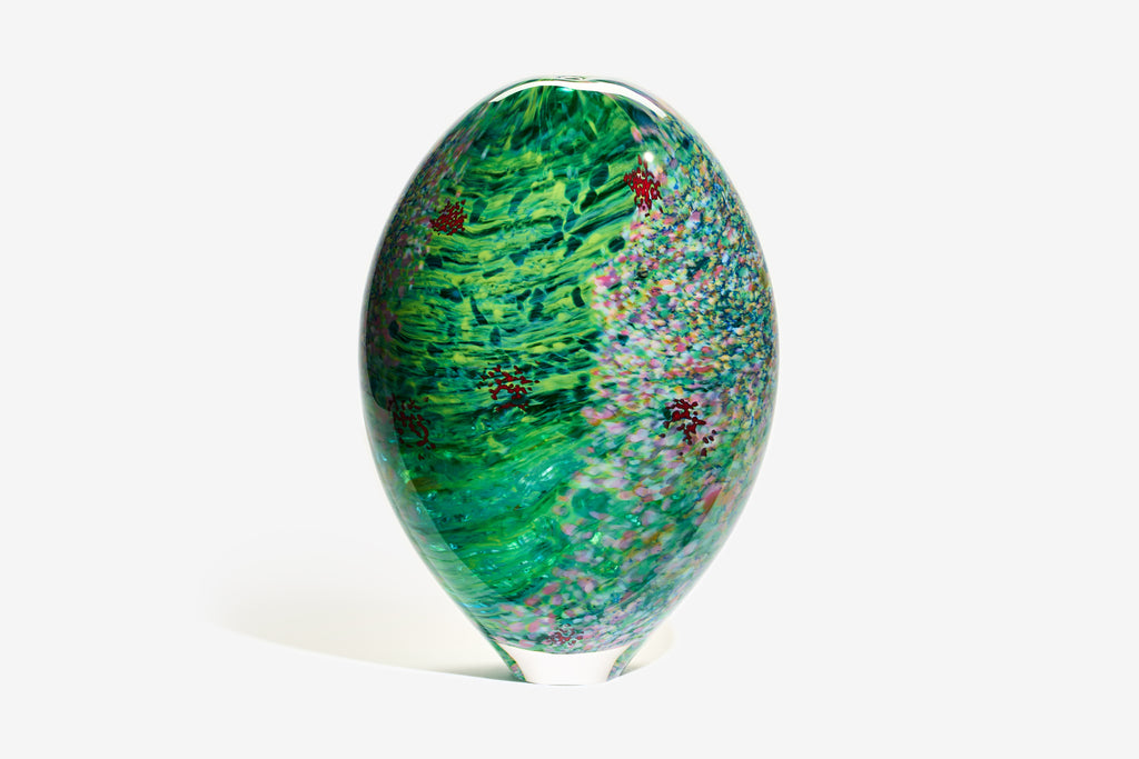 In collaboration with the National Gallery, Peter created his own impressionistic response to Monet's garden at Giverny. The design boasts of reedy undergrowth, bursting with life. Pink, lilac and red petals provide a delicate foil to luxurious variegated green foliage.