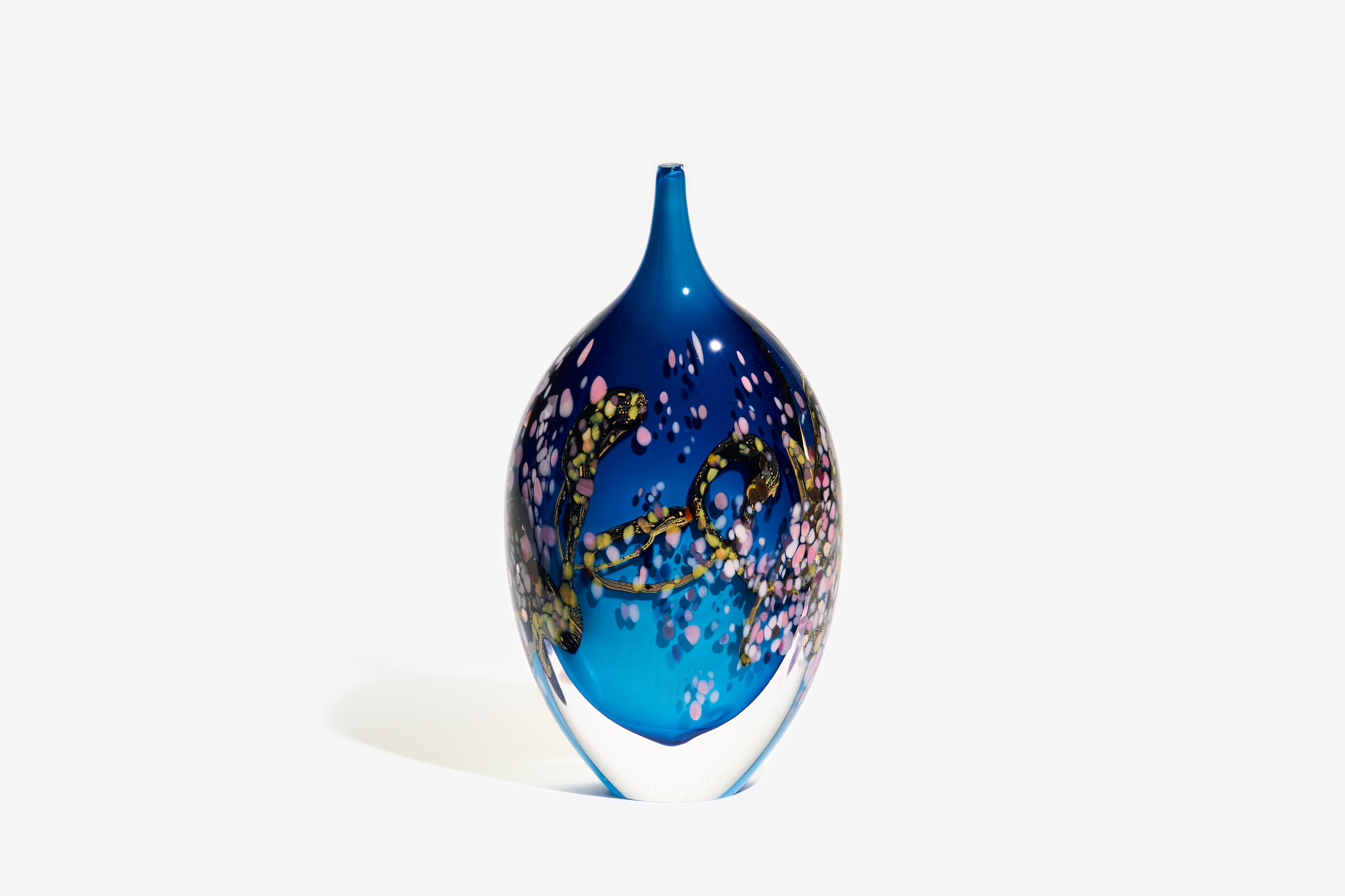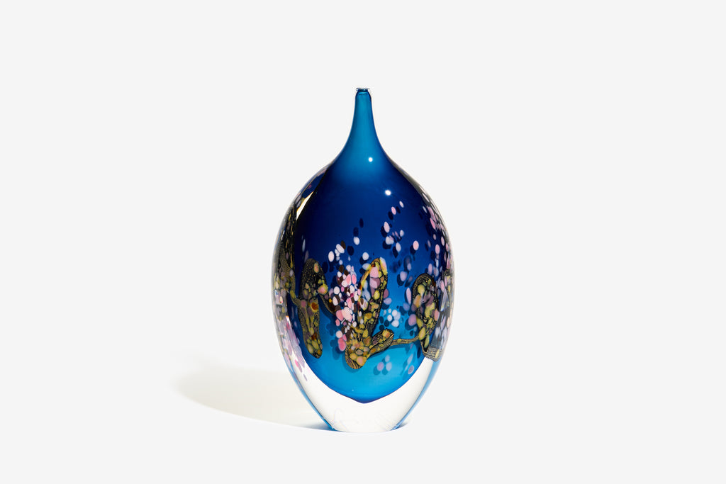 Affected by a visit to the phenomenal collection at the Van Gogh Museum in Amsterdam, Peter set about creating, in glass, the character, influenced as it was by exposure to Japanese art, of the artist’s vision of Blossom.