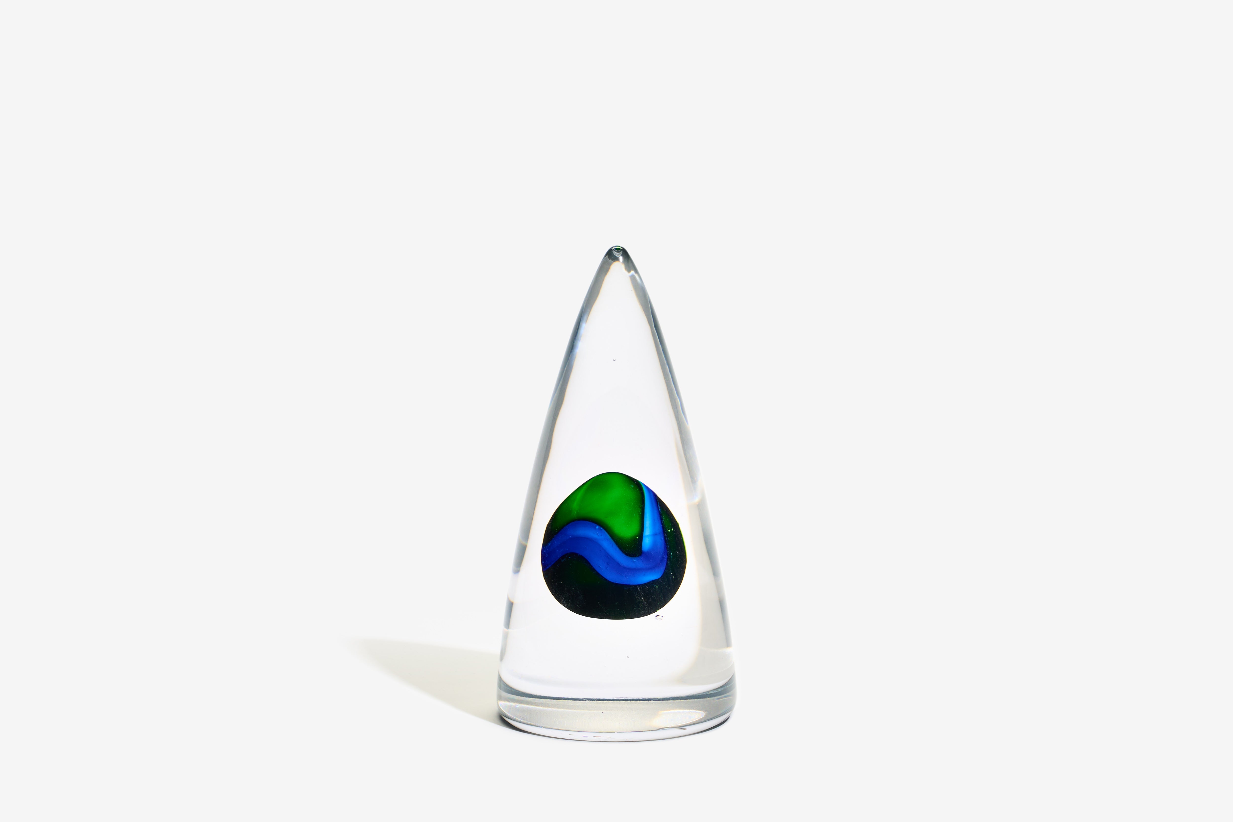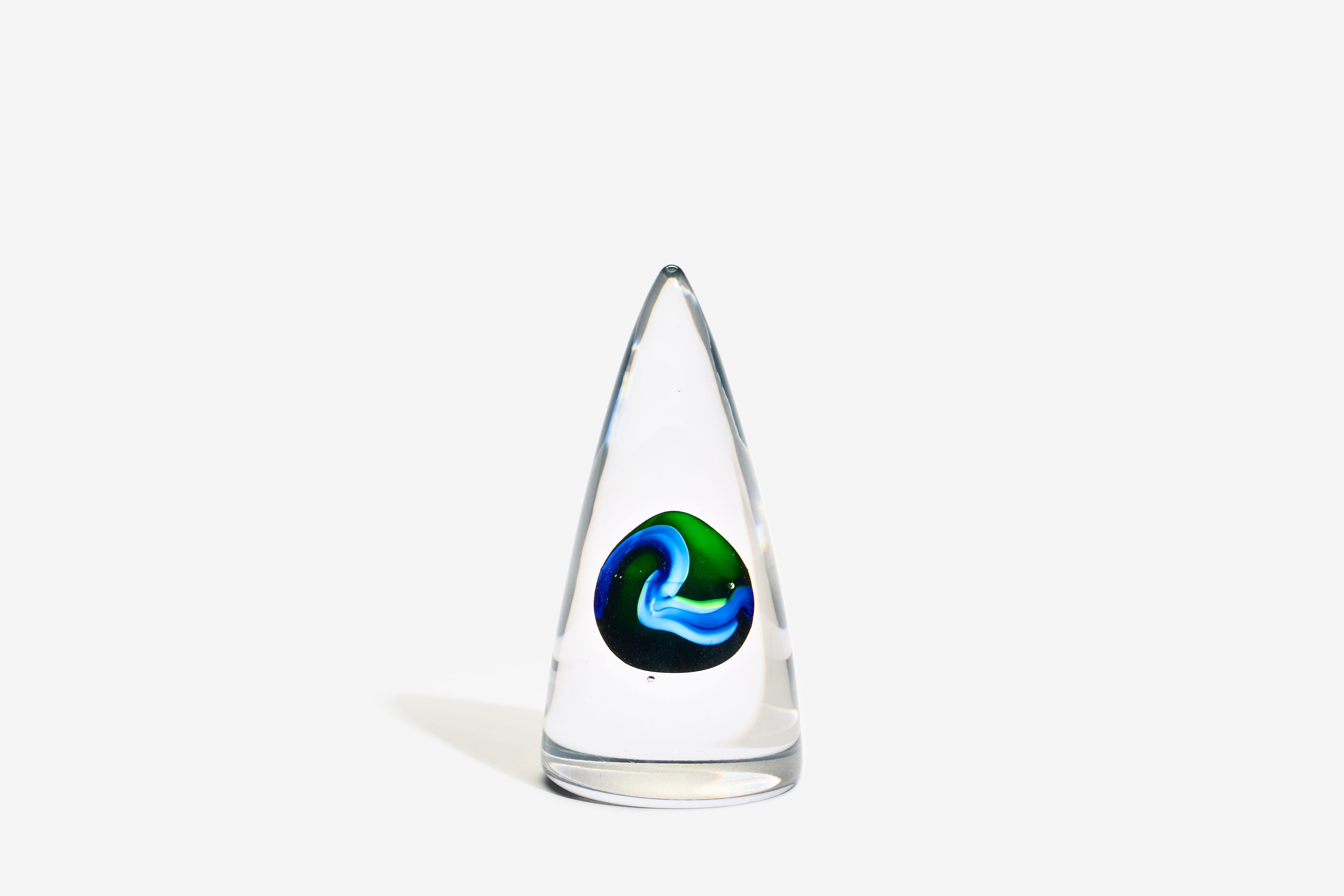 Medium Clear Blue Green Ovoid Sculpture