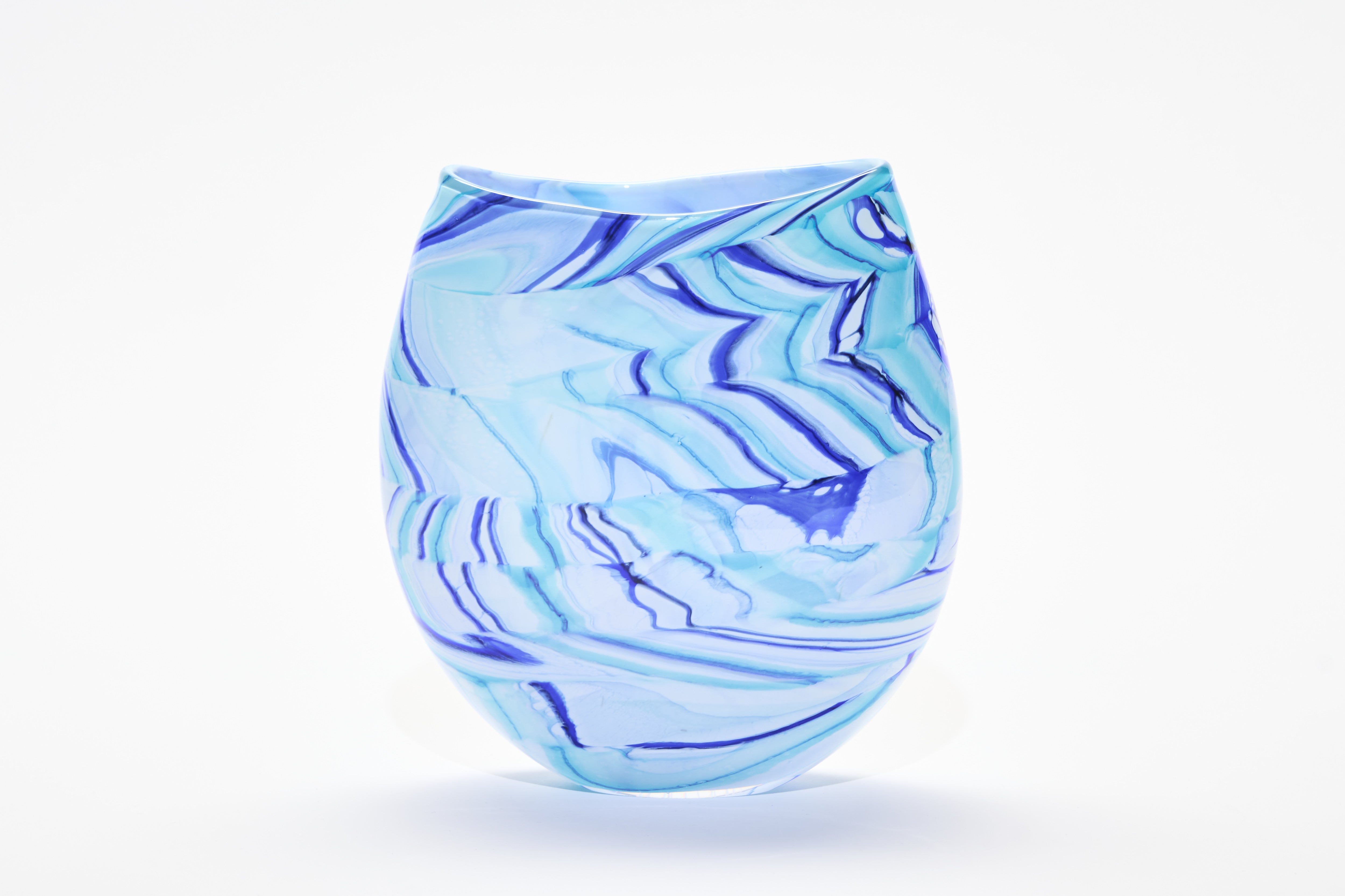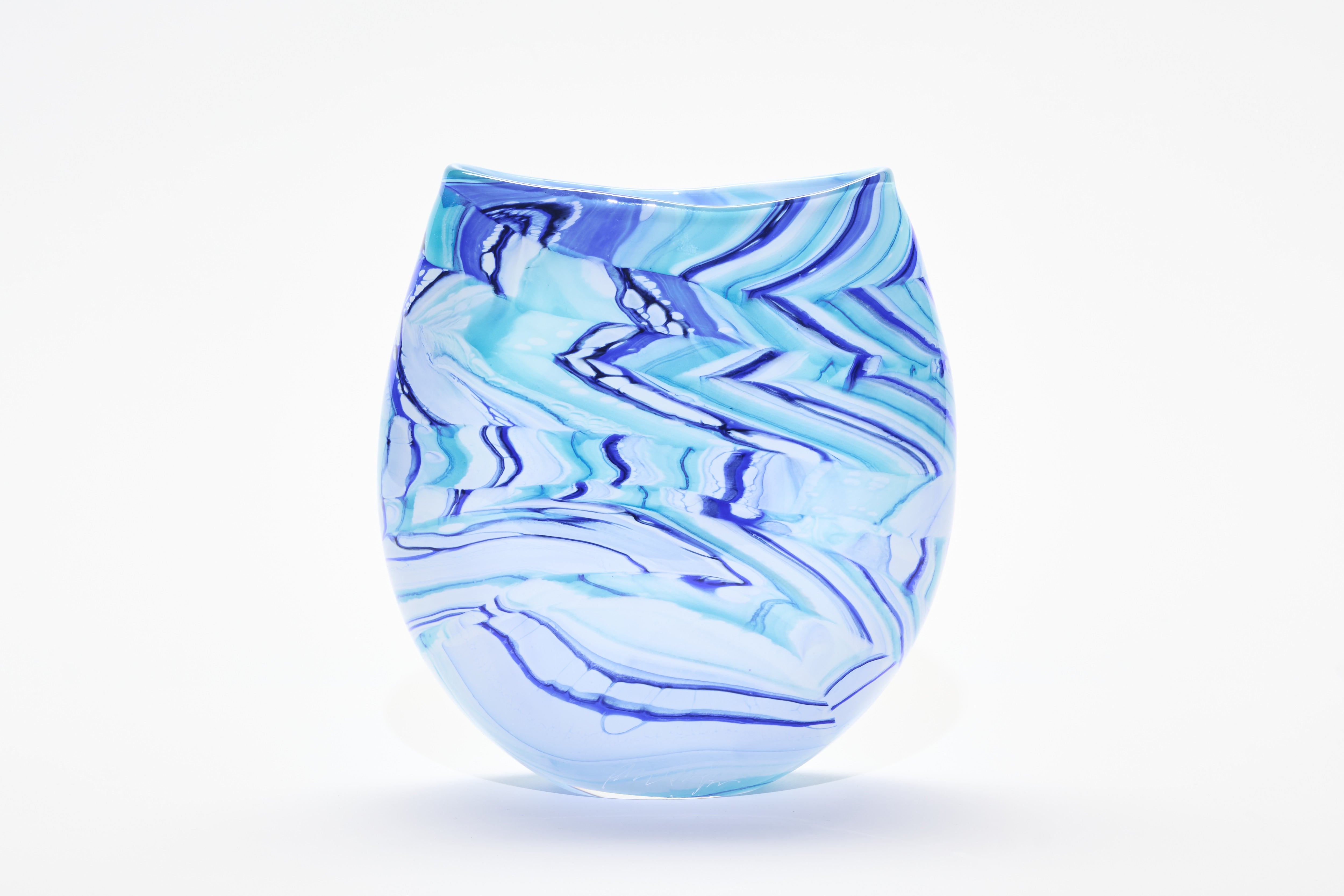 219. Herringbone Shibori Medium Wide Flattened Vase