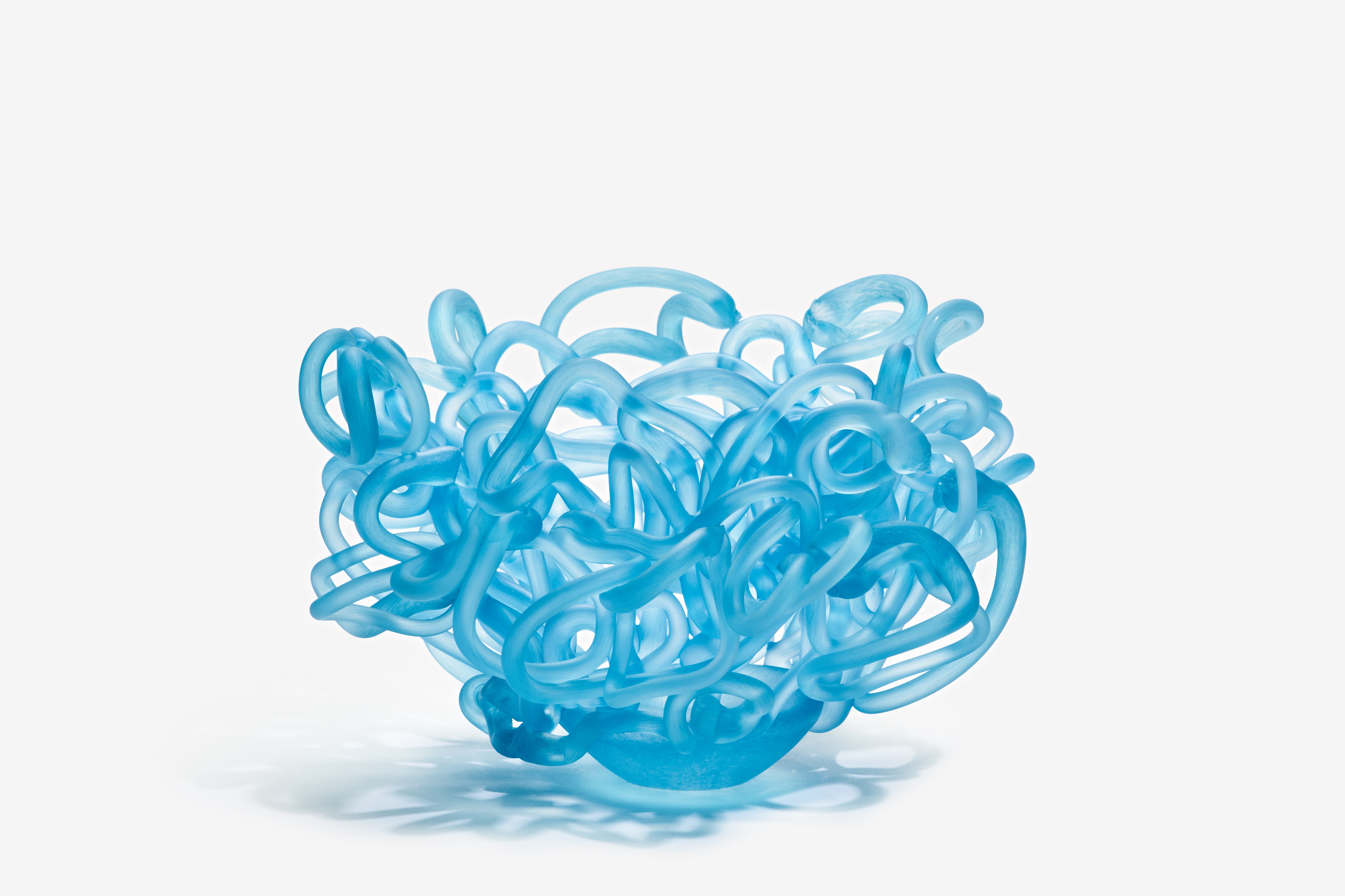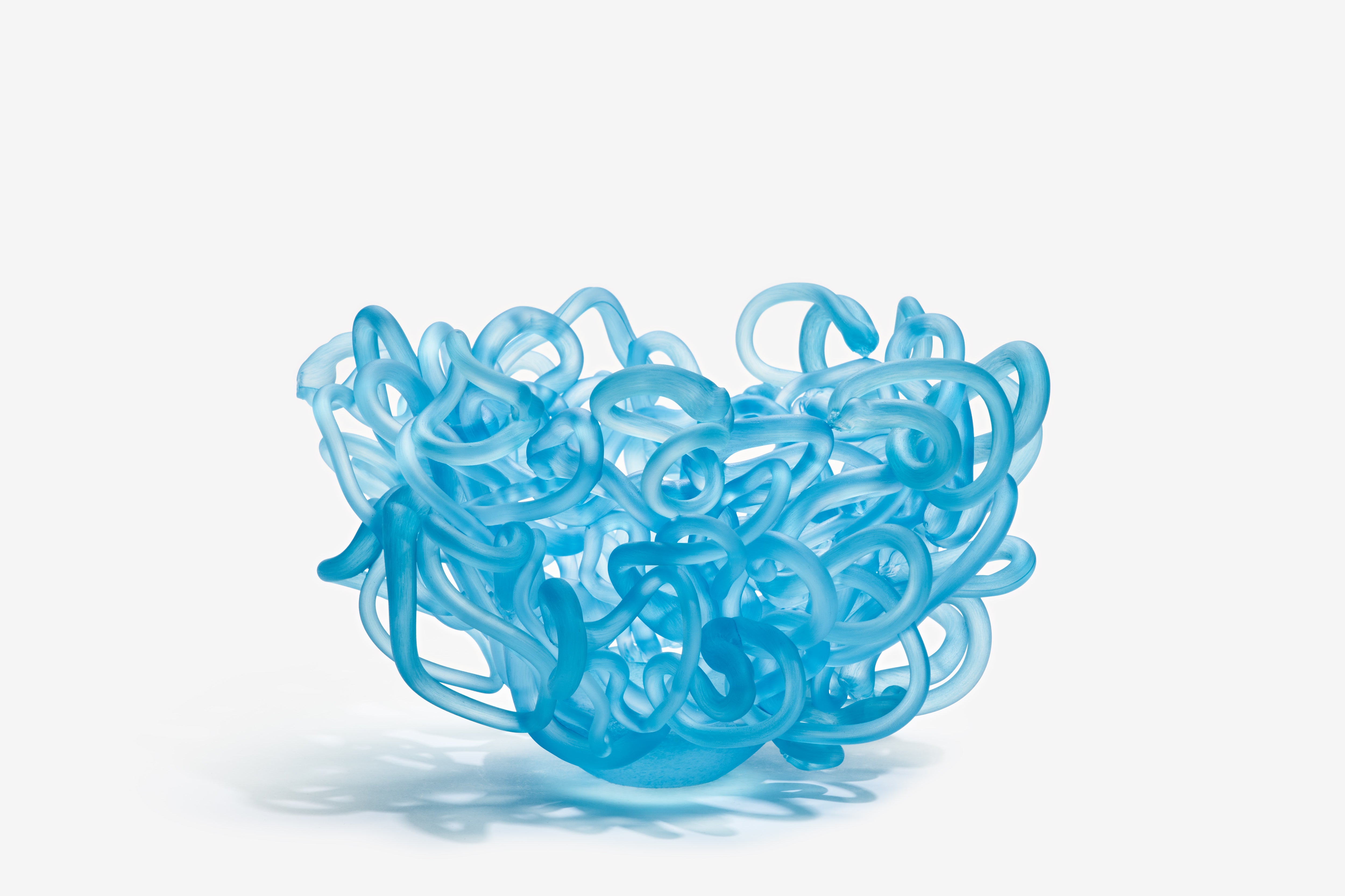 Peter’s Doodle series is a playful and intricate development of his ice basket technique, inspired by doodles and spontaneous scribbles. Each vessel is painstakingly constructed, with individual loops created separately and then combined to form the whole. The complexity of the process requires a team of four to realise a single piece, highlighting the meticulous craftsmanship and collaborative effort behind these striking, whimsical forms.