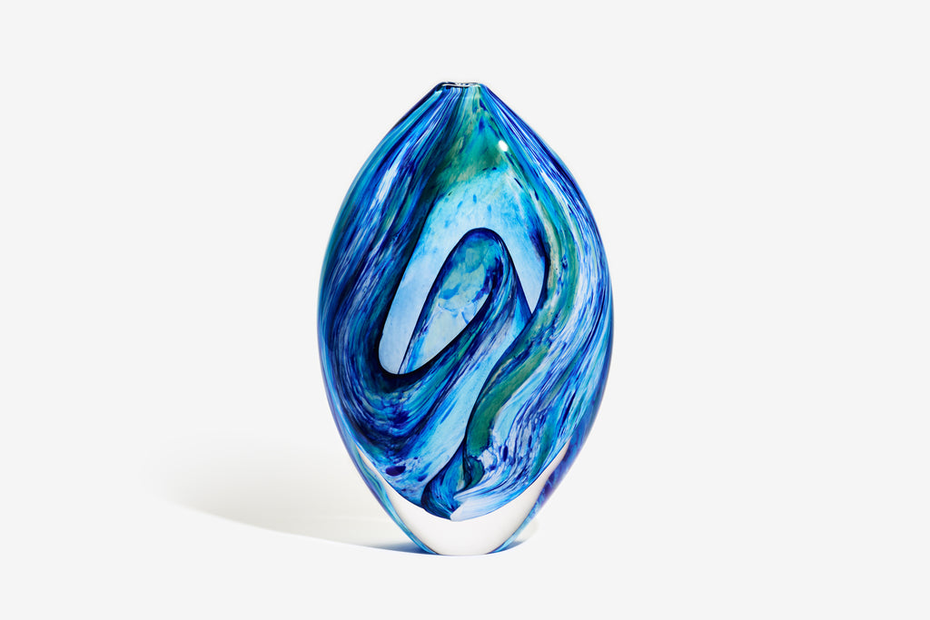 In this series, Peter pays homage to the work of one of his heroes, Georgia O'Keeffe and the sensuous yet bold nature of her work. The flowing inky blues of Peter's Georgia design reflect the movement and mystery of O’Keeffe’s paintings.