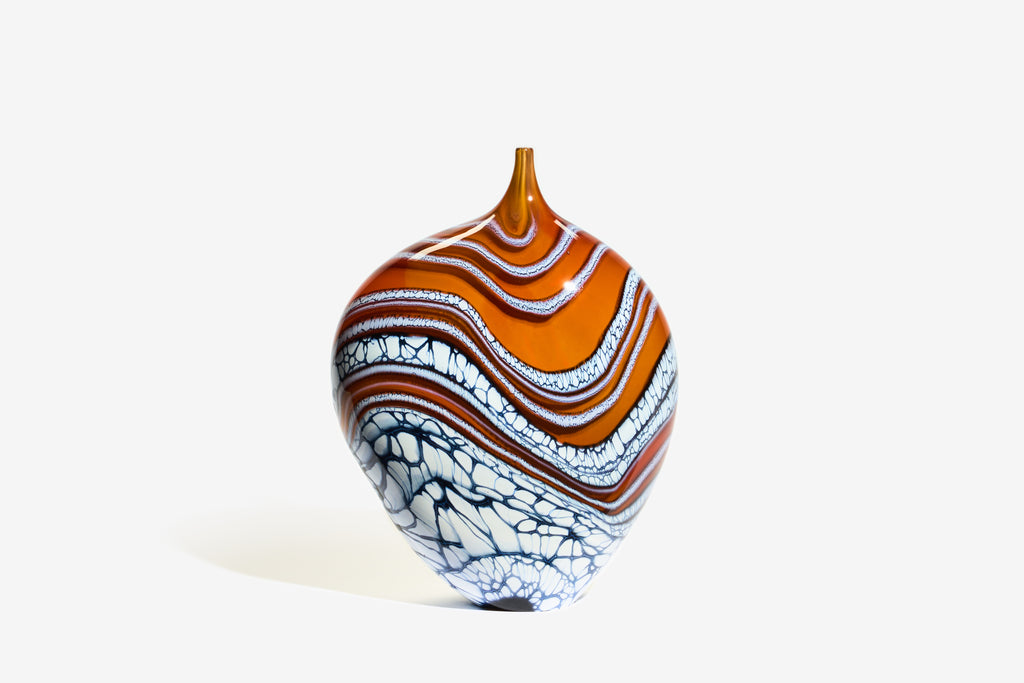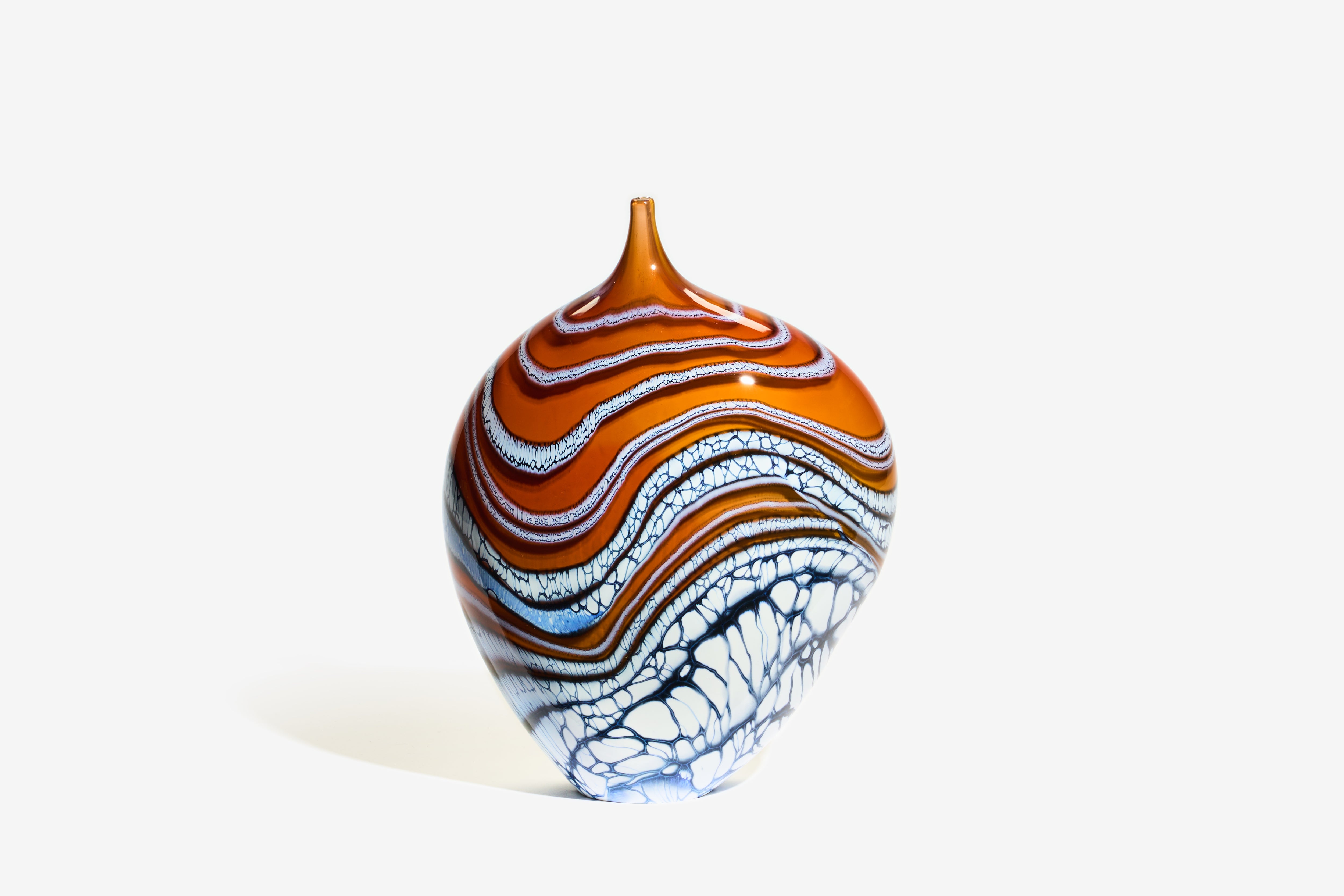 Asymmetrical and voluptuous, this Amber Glacier dropper boasts a particularly unusual shape, making it a standout piece for the Silent Auction.