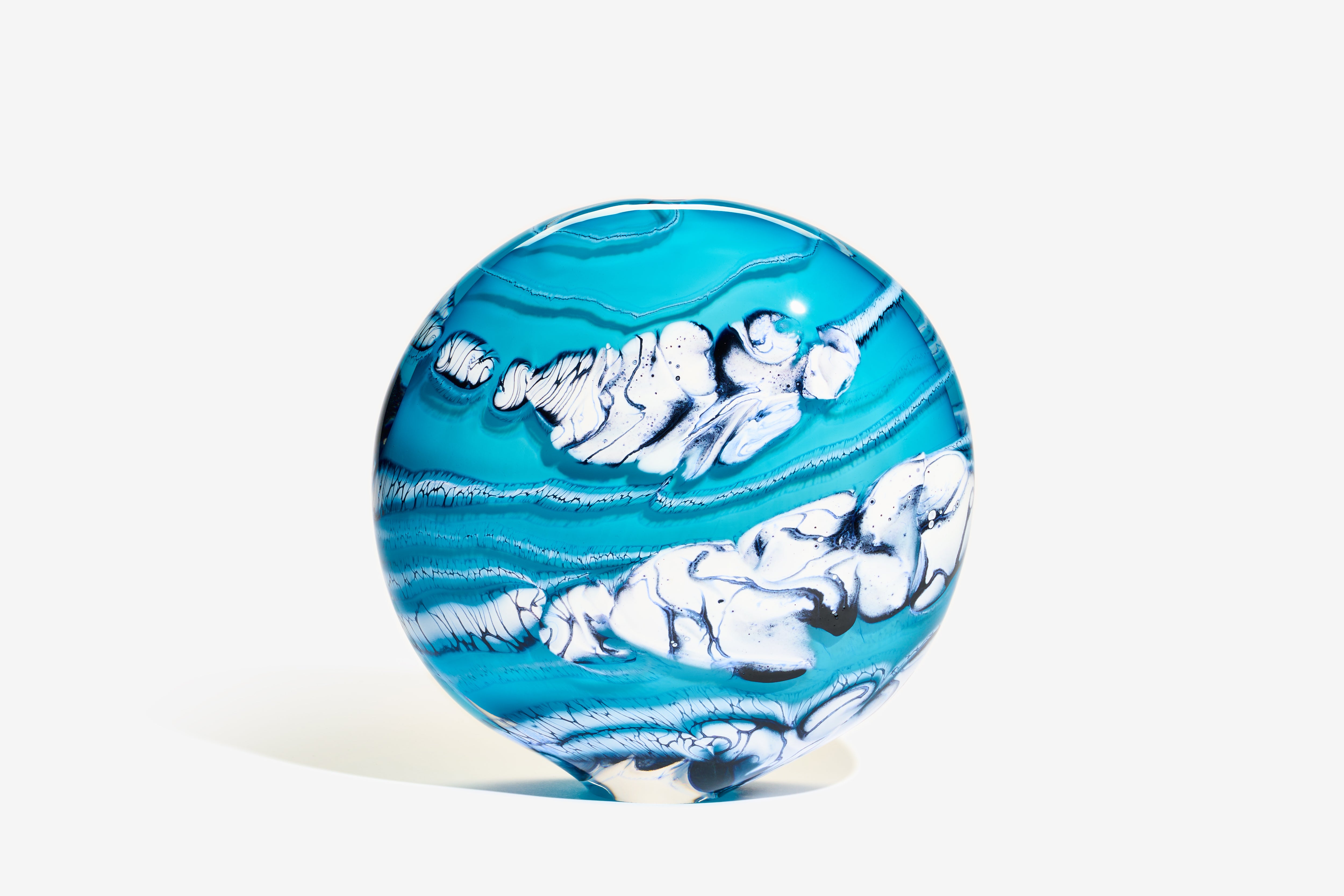 An unusual iteration of Peter’s Glacier series, this piece features soft white trails that appear almost cloud-like against a bright turquoise background. An almost perfectly formed Stoneform, it’s a particularly pleasing and tranquil artwork.