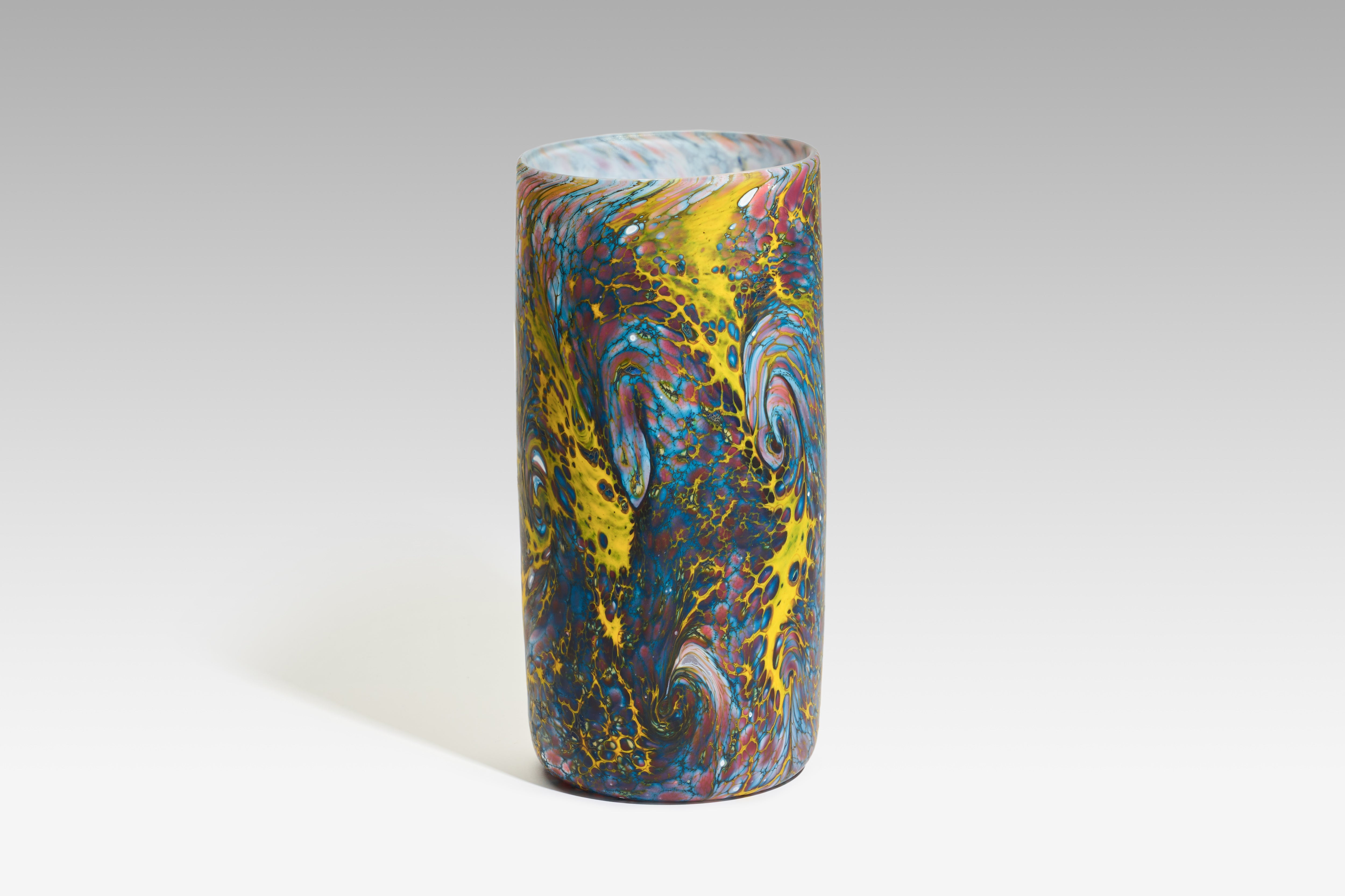 Inspired by Jupiter, this striking tall vase captures the planet’s atmospheric drama and dynamic energy. The acid-etched surface adds a subtle matte texture, enhancing the sense of movement and intensity. Perfect as a standalone artwork or to display a bouquet, it brings both elegance and planetary intrigue to any space.