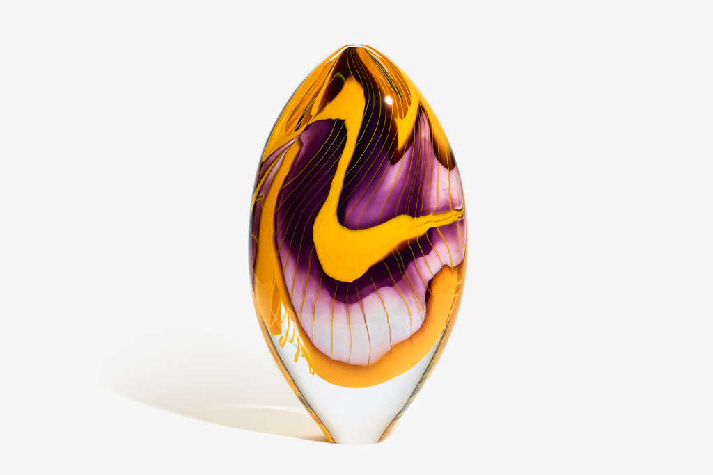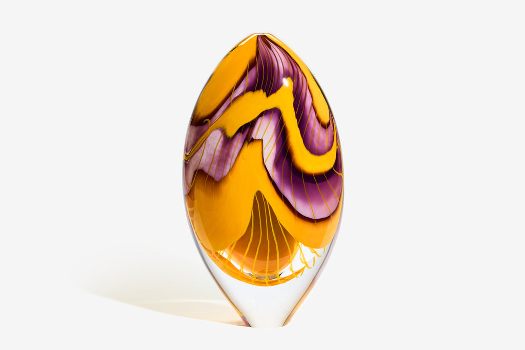 In his quest to achieve the perfect cool tones for the Archipelago series, Peter also experimented with a warm colourway of yellow and purple. Ultimately, he chose to focus on the cooler greens and blues that define the series, which makes this piece extra special.
