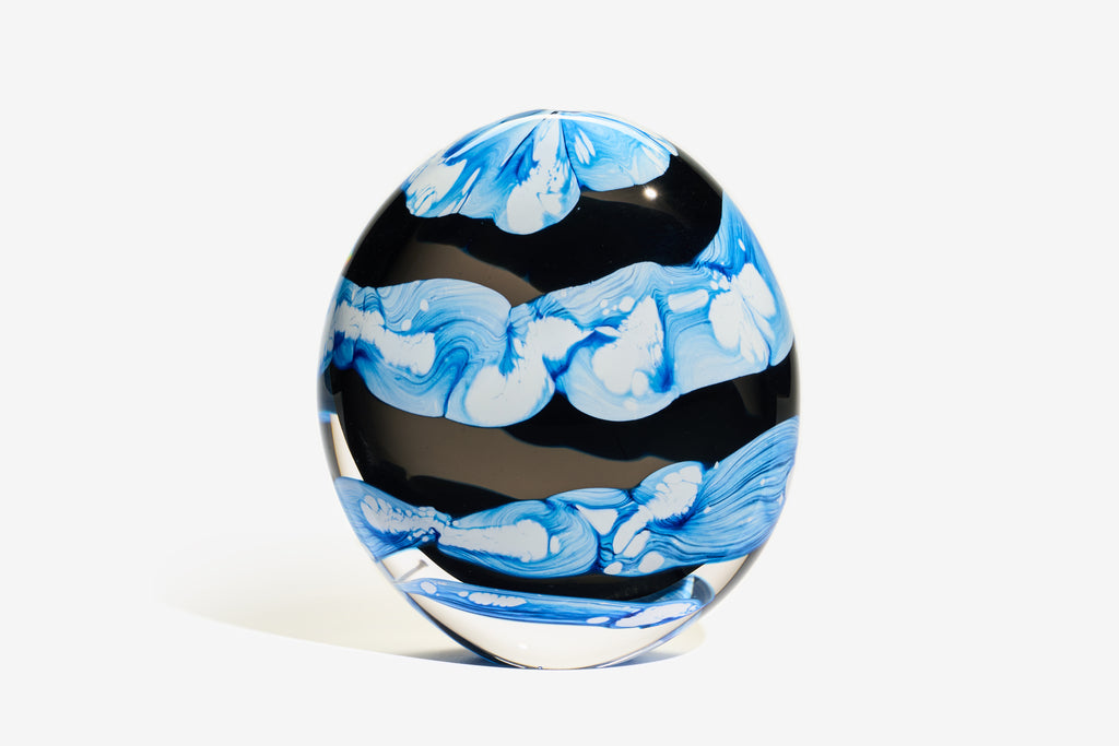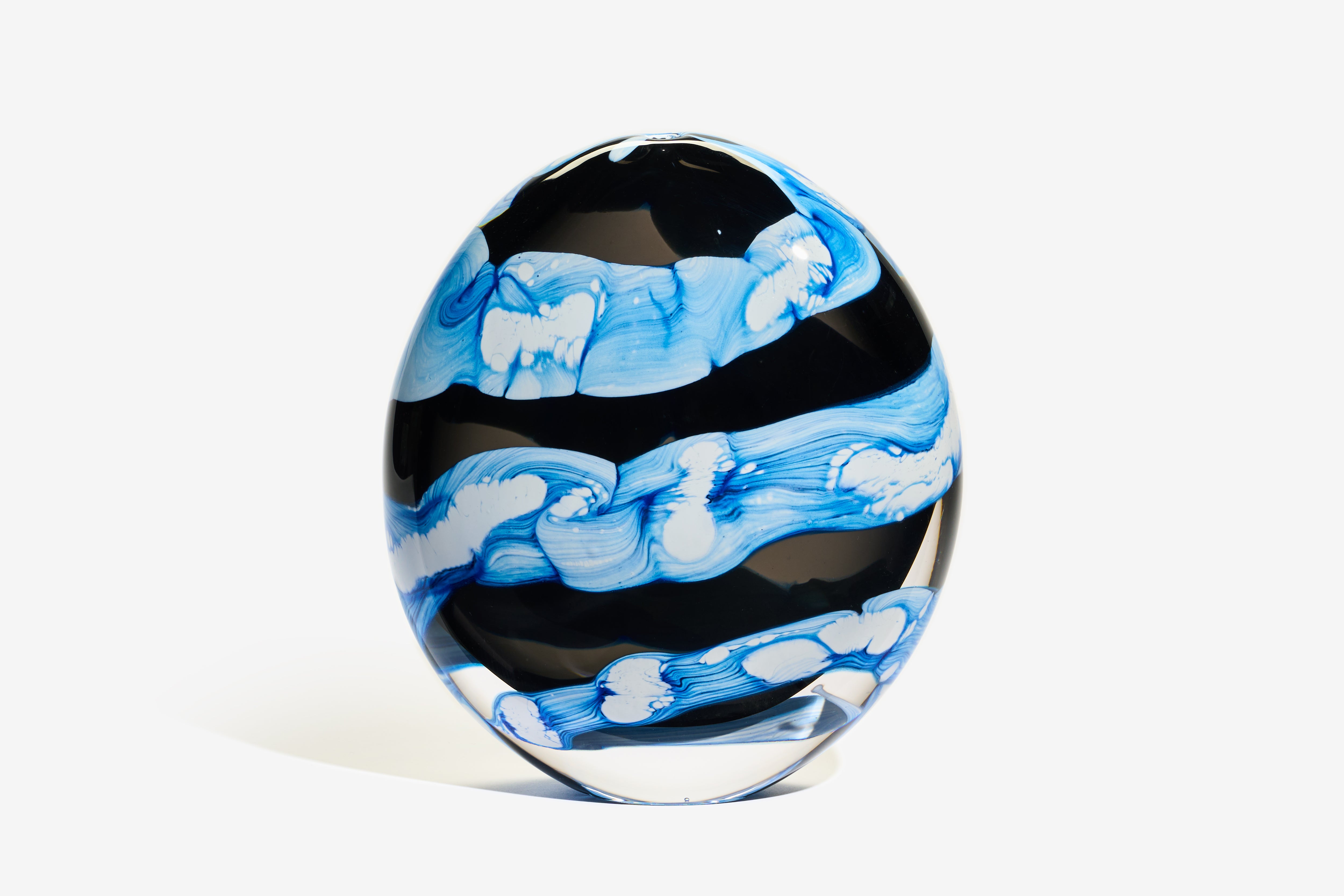 This Stoneform holds a secret - what appears to be a dark, impenetrable black background is surprisingly receptive to light. When held up to a window, sunlight sparkles through the black stripes, revealing a hidden surprise. Beautifully contrasted with the turquoise glacier sections, this piece is a true delight.