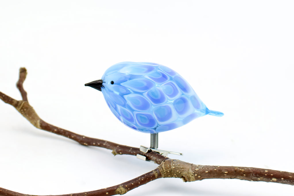 Light Blue Dots Clip On Bird Decoration