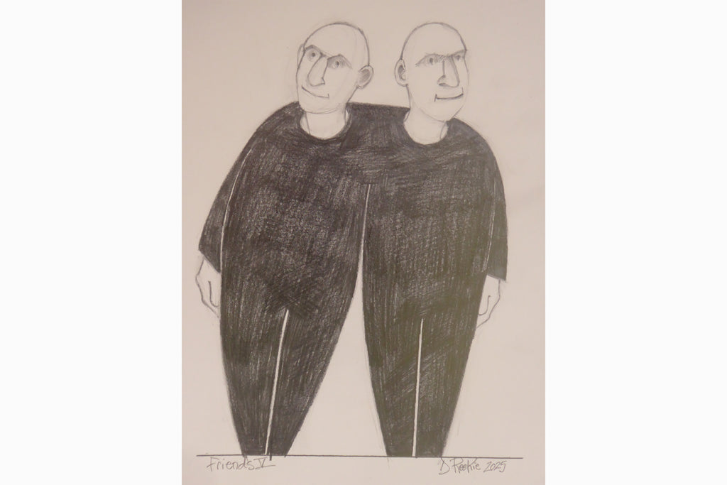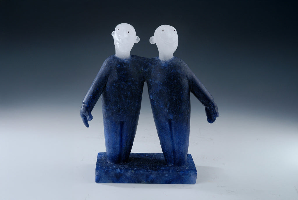 David’s cast glass and wood sculptures explore human curiosity and the importance of deep observation. These figures reveal how subtle body language, a glance or tilt of the head - can communicate profound meaning. David invites viewers to look beyond the surface, suggesting that truth requires careful attention to detail. Complemented by Glenn Godden's flameworked element, the work challenges us to question what we see and understand more fully.