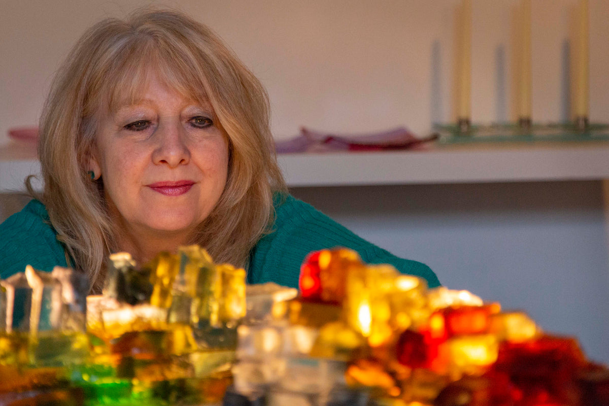 Deborah's sculptures capture natural landscapes and human interventions, inspired by stone bridges, harbour walls, and rocky outcrops. Her compositions skillfully blend defined rocky edges with soft vegetation, using bold colours to evoke the landscape's richness where stone, sea, and sky converge. Each piece is a testament to nature's raw beauty, forever preserved in the timeless medium of glass.