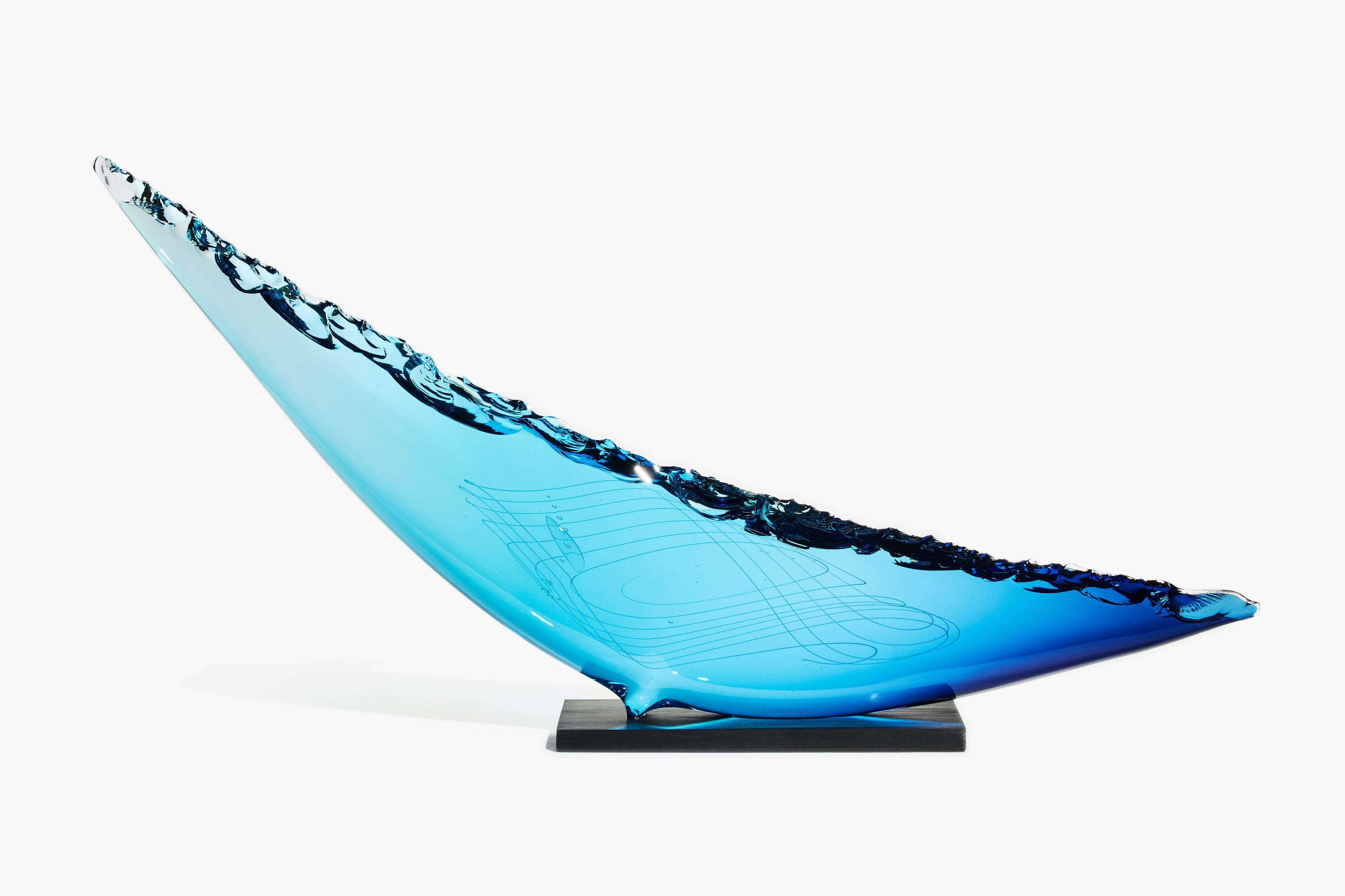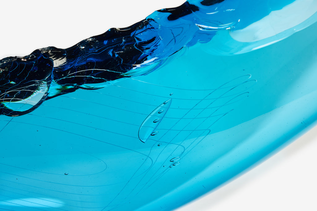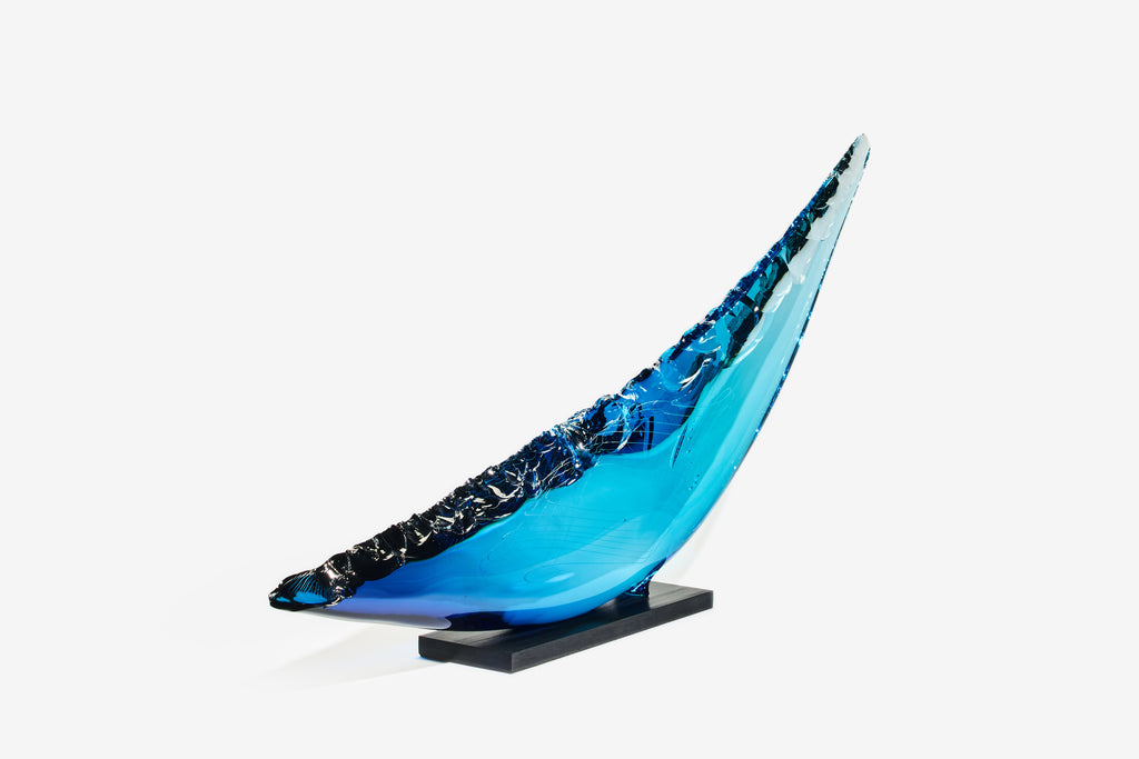 The Fluke Collection represents the result of laboured experiments by James to literally chip hot glass like stone. After perfecting this unusual technique, he produces monolithic objects with smooth lines juxtaposed against fractured edges. Within his works, James often explores our interaction and fascination with ancient artefacts; perhaps it is the untold stories of worship, sacrifice and survival held within them that spark our imagination, or the pure beauty of our ancestors' craftsmanship.