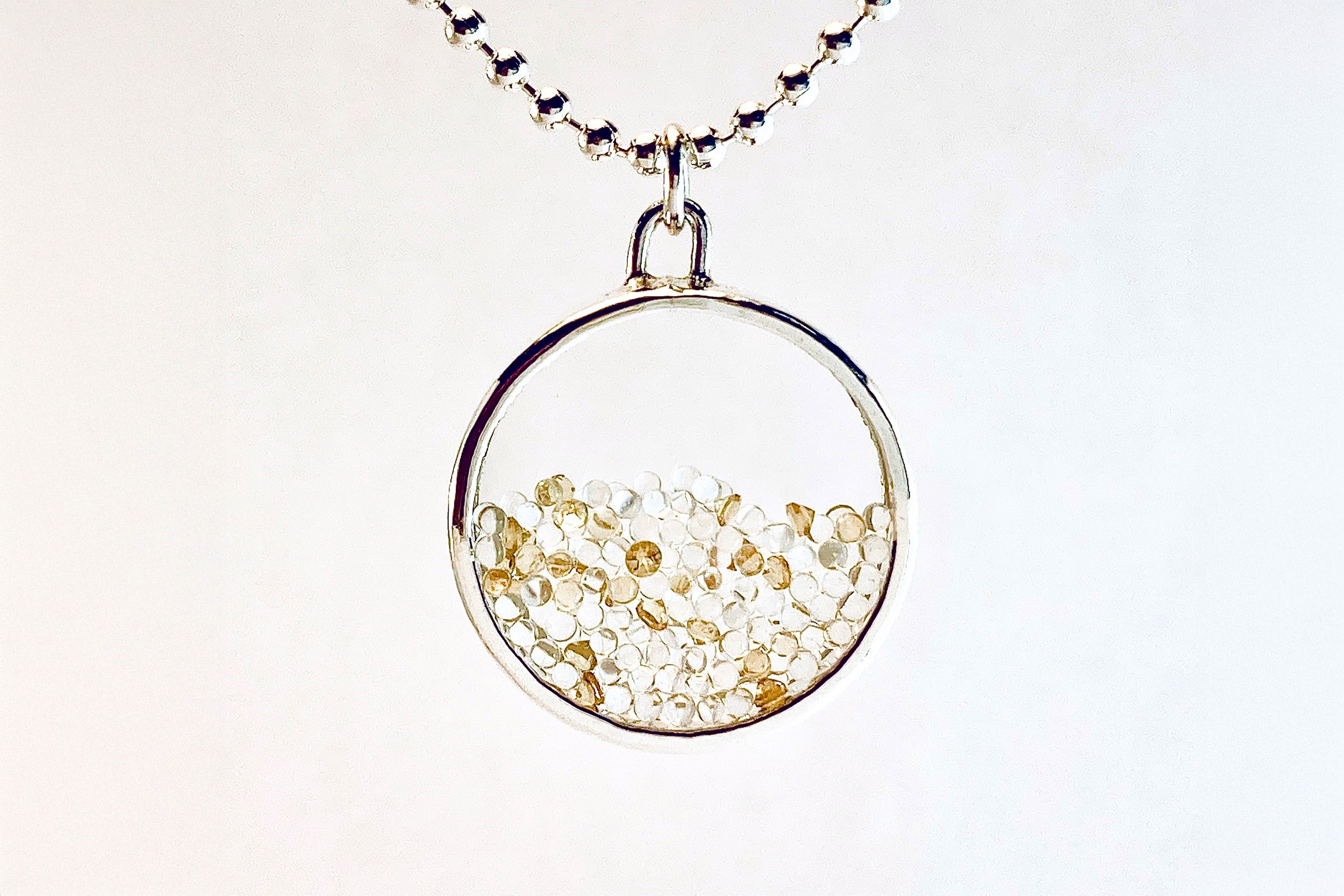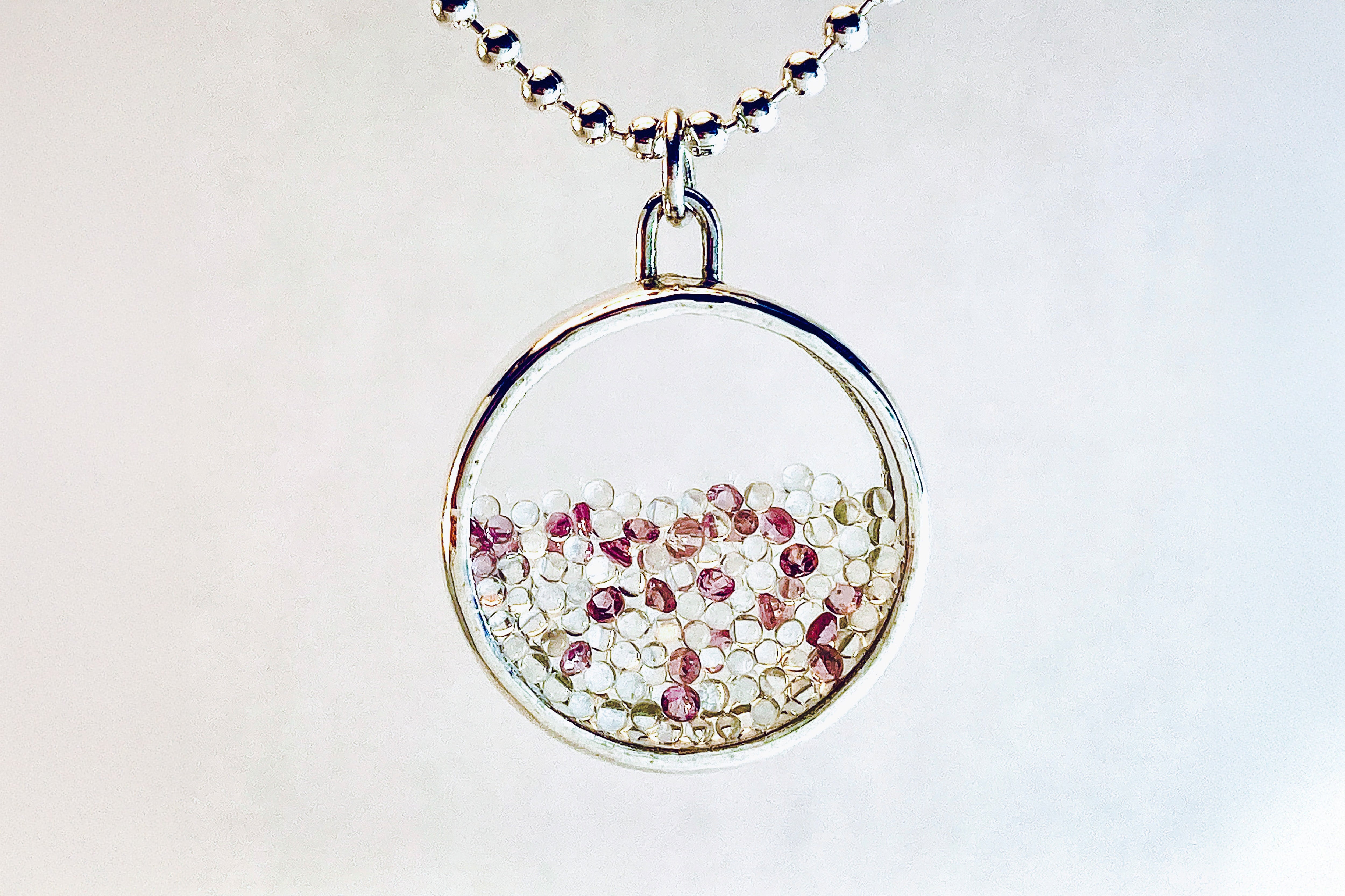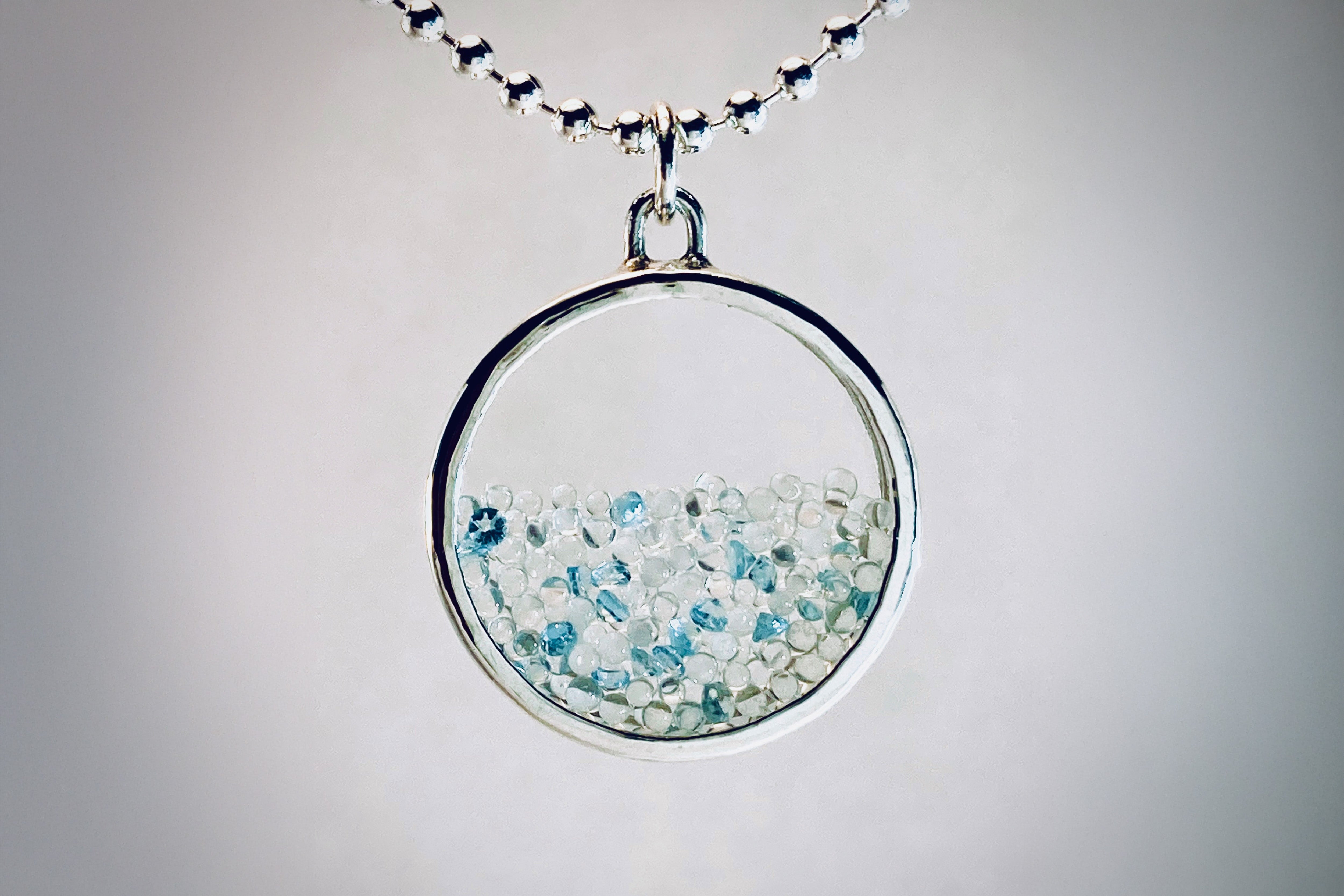 Mineral and ballotini glass with 925 sterling silver and 999 fine silver