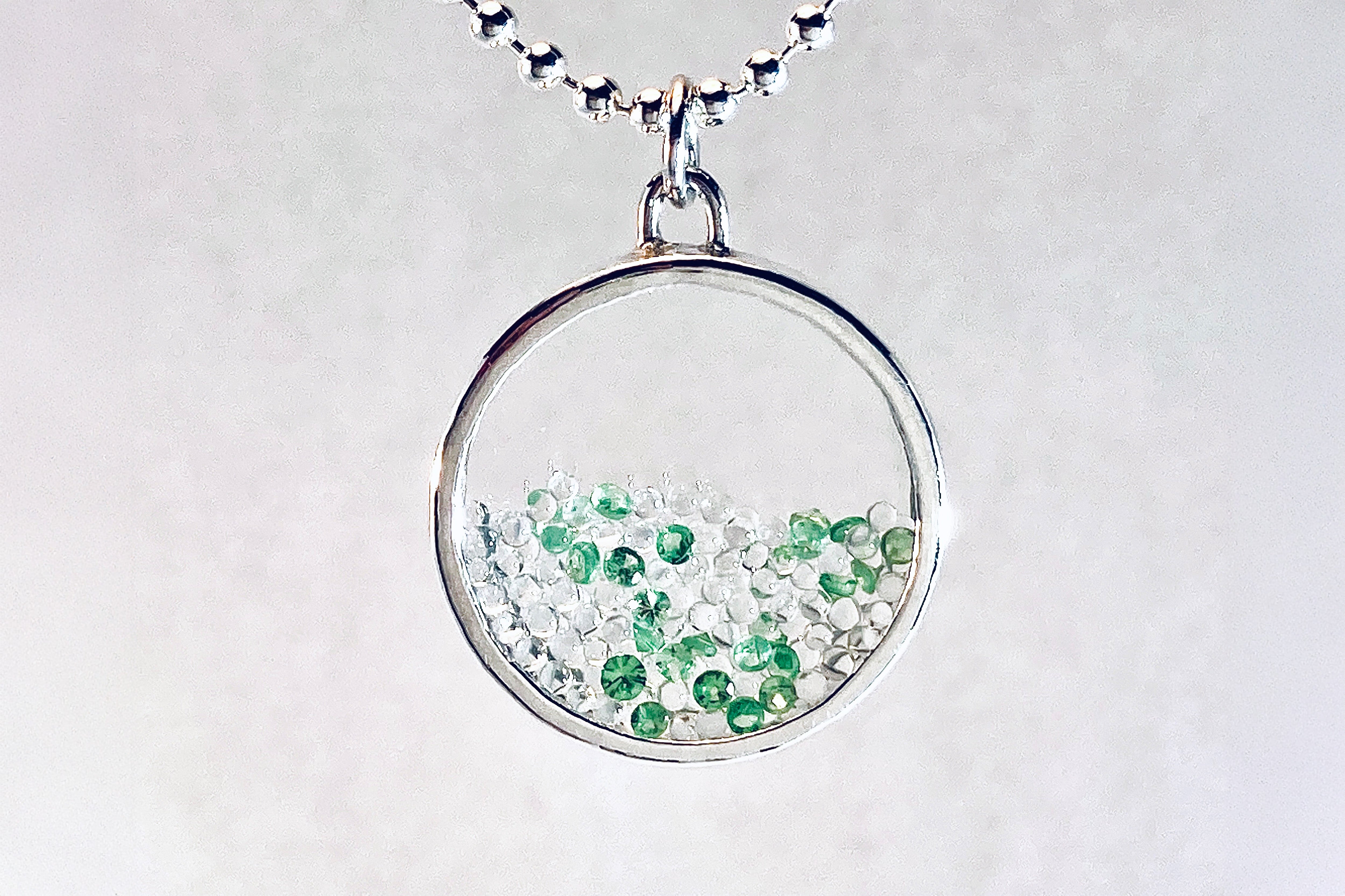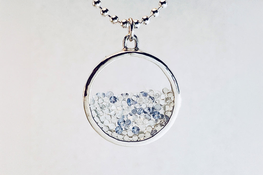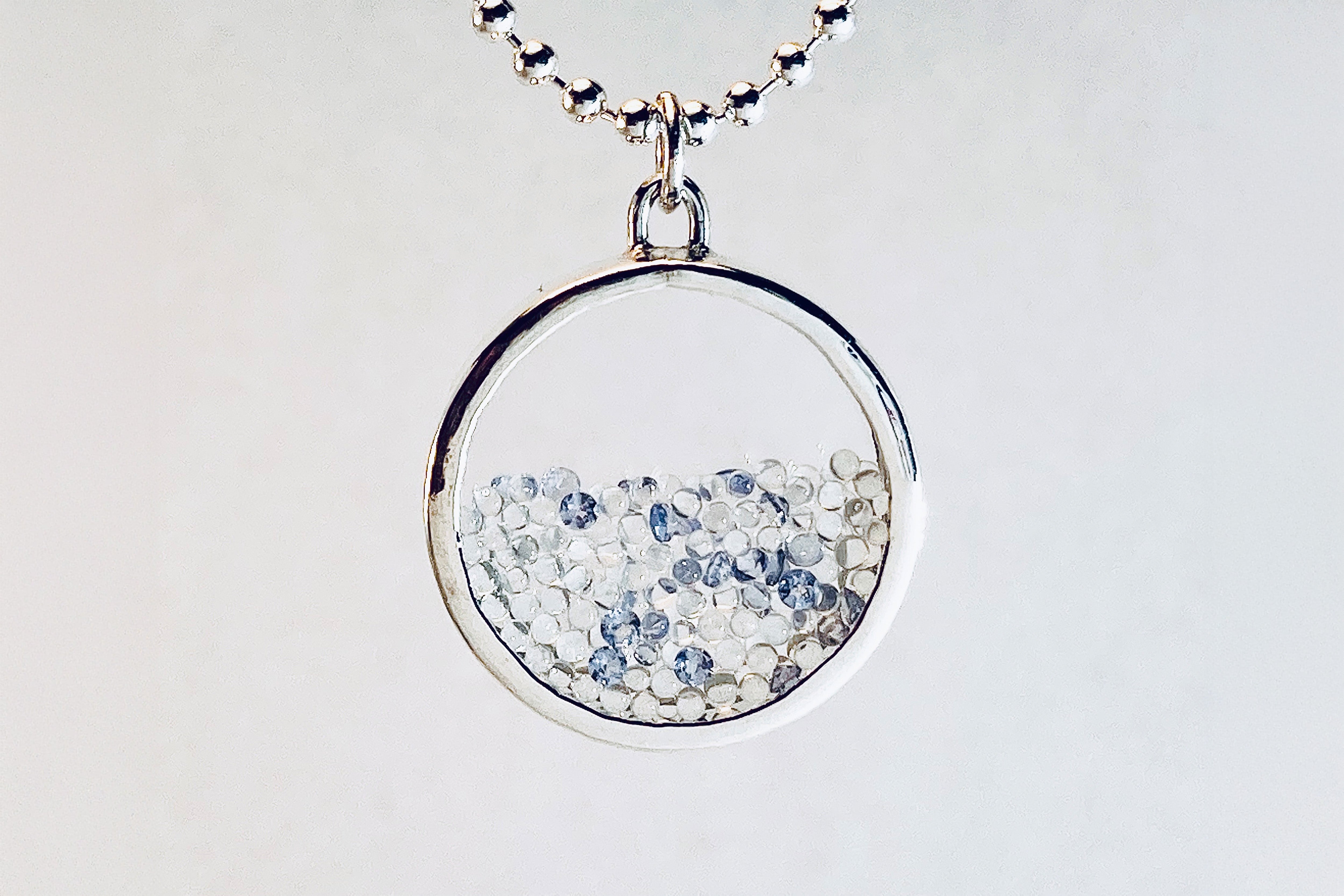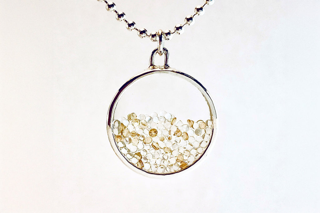 Mineral and ballotini glass with 925 sterling silver and 999 fine silver