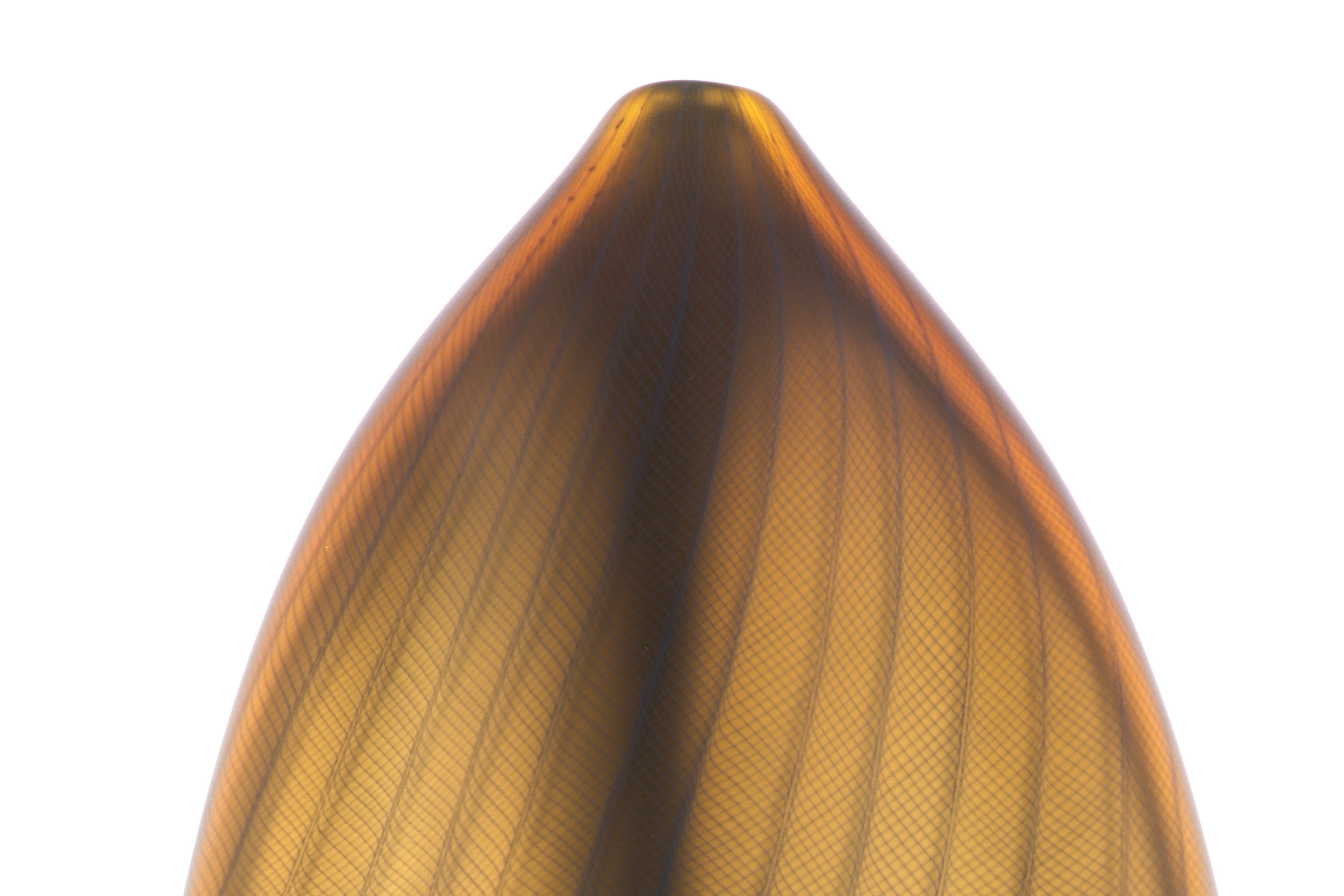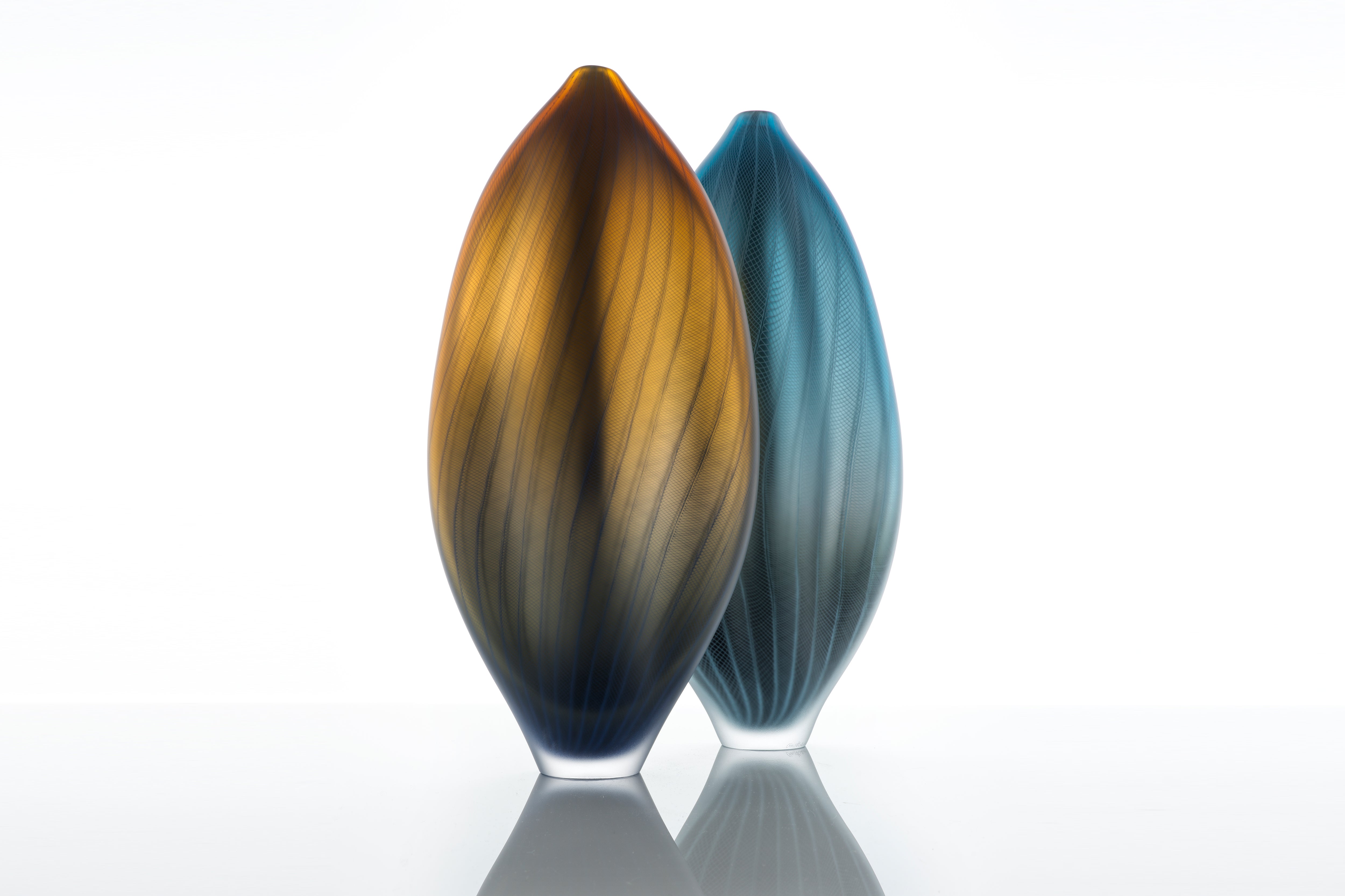 The Stratiform series explores glass as both material and conceptual system. Using filigree canes, mirrored interiors and modulated surfaces, Liam creates layered fields of colour and structure that suggest suspended depth. Through contrasts of translucency and opacity, reflection and diffusion, Liam establishes shifting relationships between object, light and viewer, positioning glass as a stratified medium.