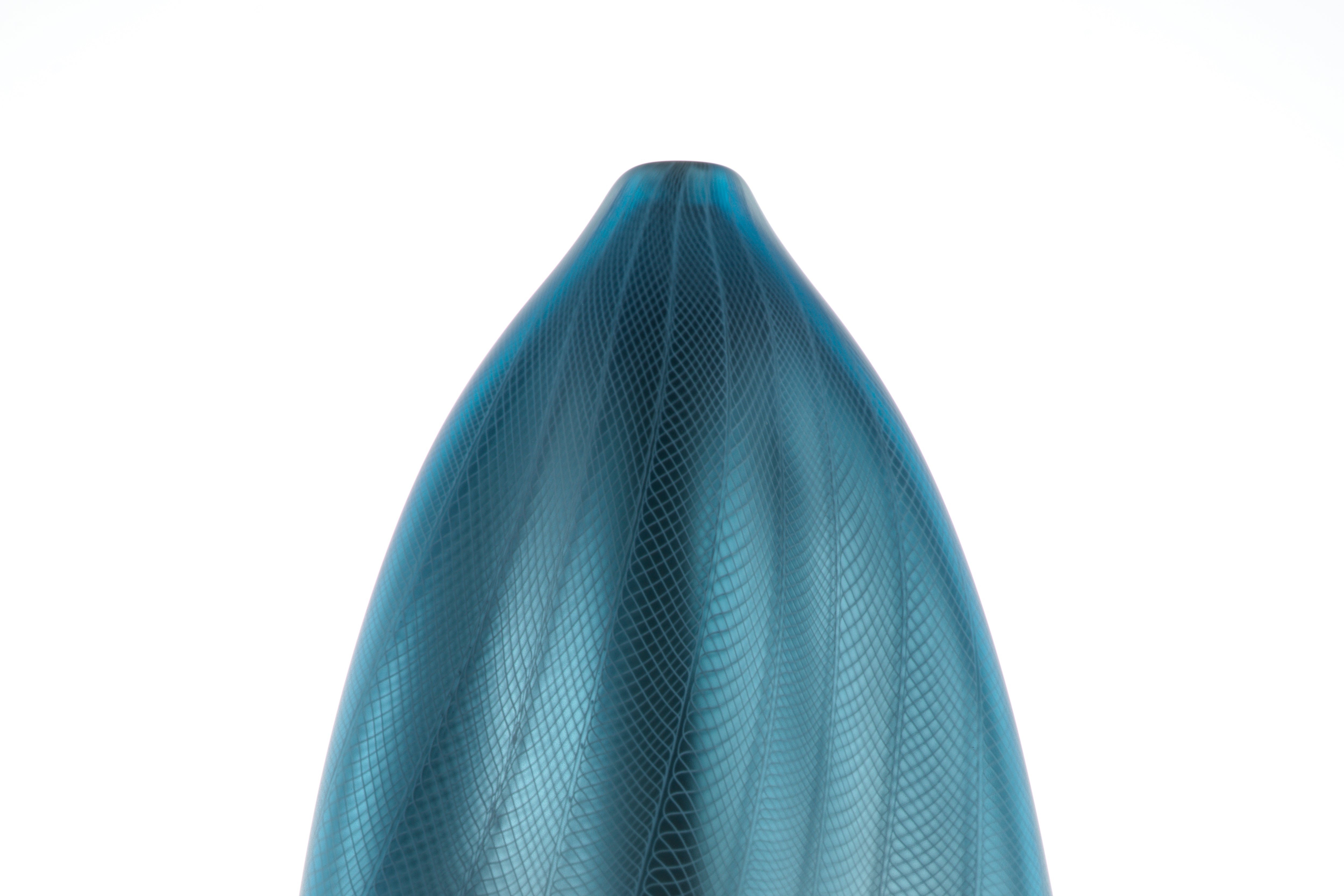 The Stratiform series explores glass as both material and conceptual system. Using filigree canes, mirrored interiors and modulated surfaces, Liam creates layered fields of colour and structure that suggest suspended depth. Through contrasts of translucency and opacity, reflection and diffusion, Liam establishes shifting relationships between object, light and viewer, positioning glass as a stratified medium.