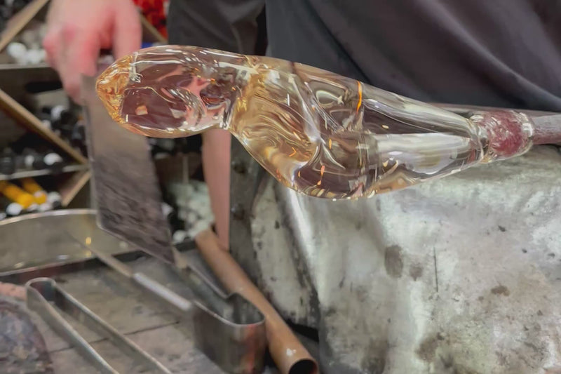 Milos is inspired by the striking white volcanic rock formations of the island, particularly at Sarakiniko Beach, where cliffs have been sculpted over millennia by wind and sea into smooth, otherworldly shapes. Close to Folegandros, where Peter’s youngest son was married, Milos also holds a rich cultural heritage as the site where the Venus de Milo was discovered. Peter has long admired Cycladic art, with its elegant, minimalist figurines, and in this series he makes his first exploration of figurative glass. The works blend the island’s natural forms with the simple, timeless beauty of Cycladic sculpture.