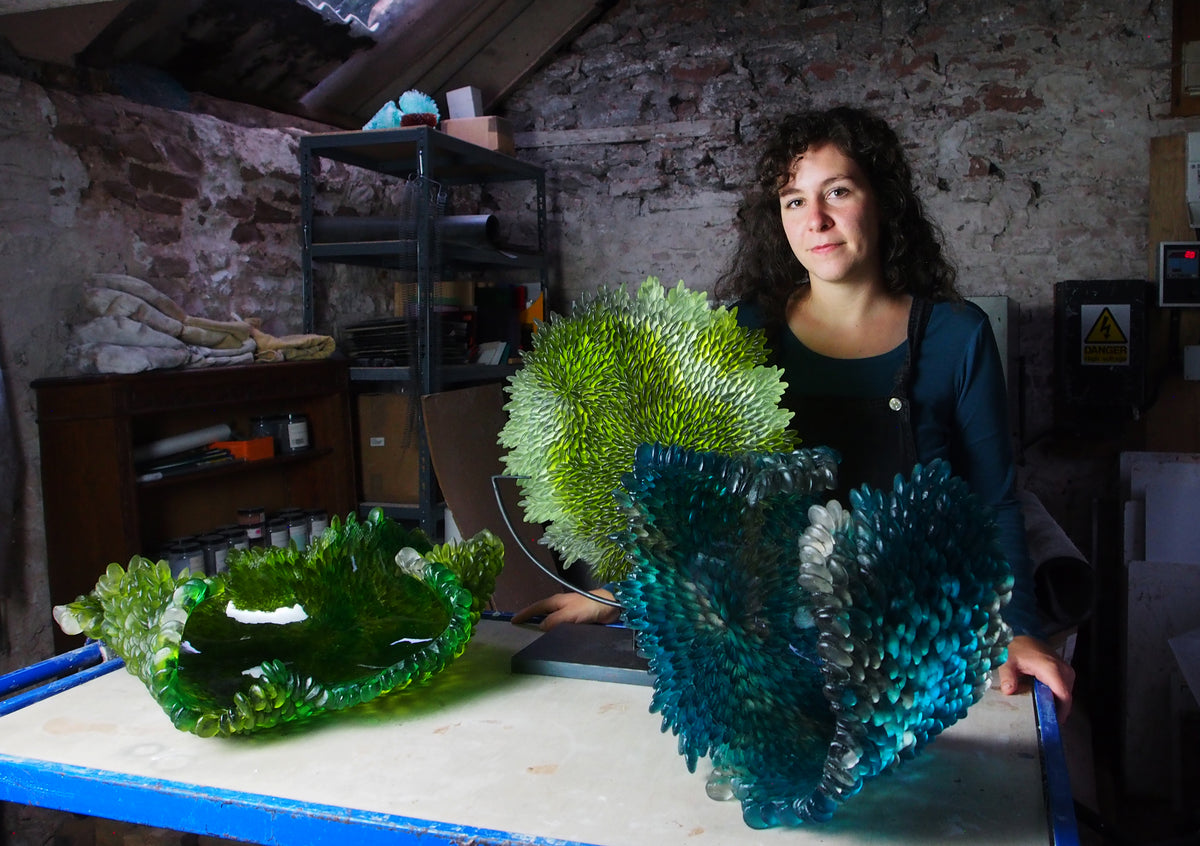 Each piece captures the ephemeral beauty of nature: seeds unfurling, lichen spreading, mushrooms sprouting—all immortalised in luminous glass. Nina combines kiln casting, hot manipulation, and hand engraving techniques to create unique pieces that reflect her artistic vision and connection to the natural world.