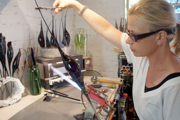 Olga's love for glass sparked spontaneously, propelling her to become a glass artist and jewellery designer for over a decade. After working in the corporate world, the Russian economy's downturn prompted her to pursue her buried passions. She was taught to work with the open flame by her mother, Elena Hernburg, an internationally renowned artist and master lampworker herself.