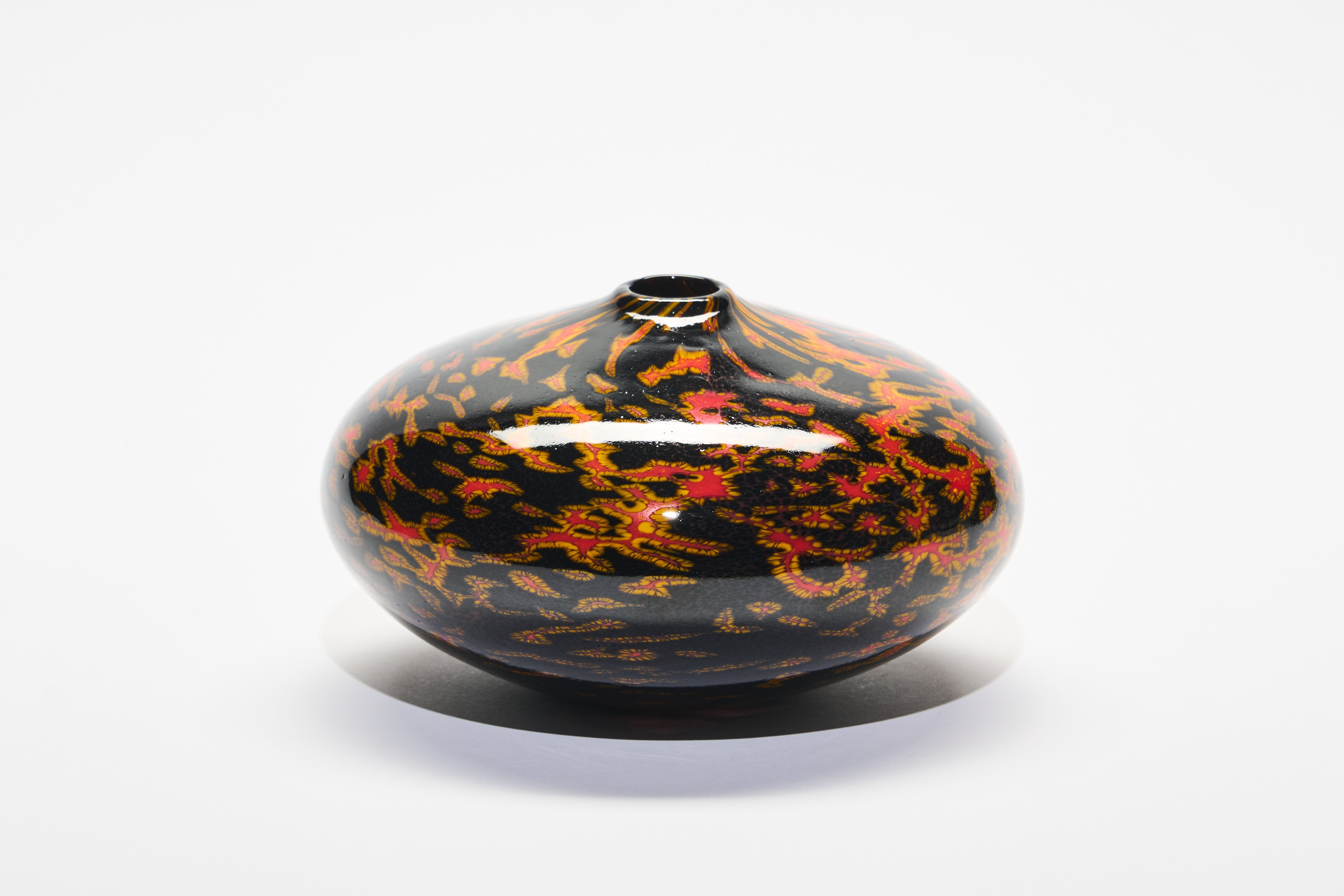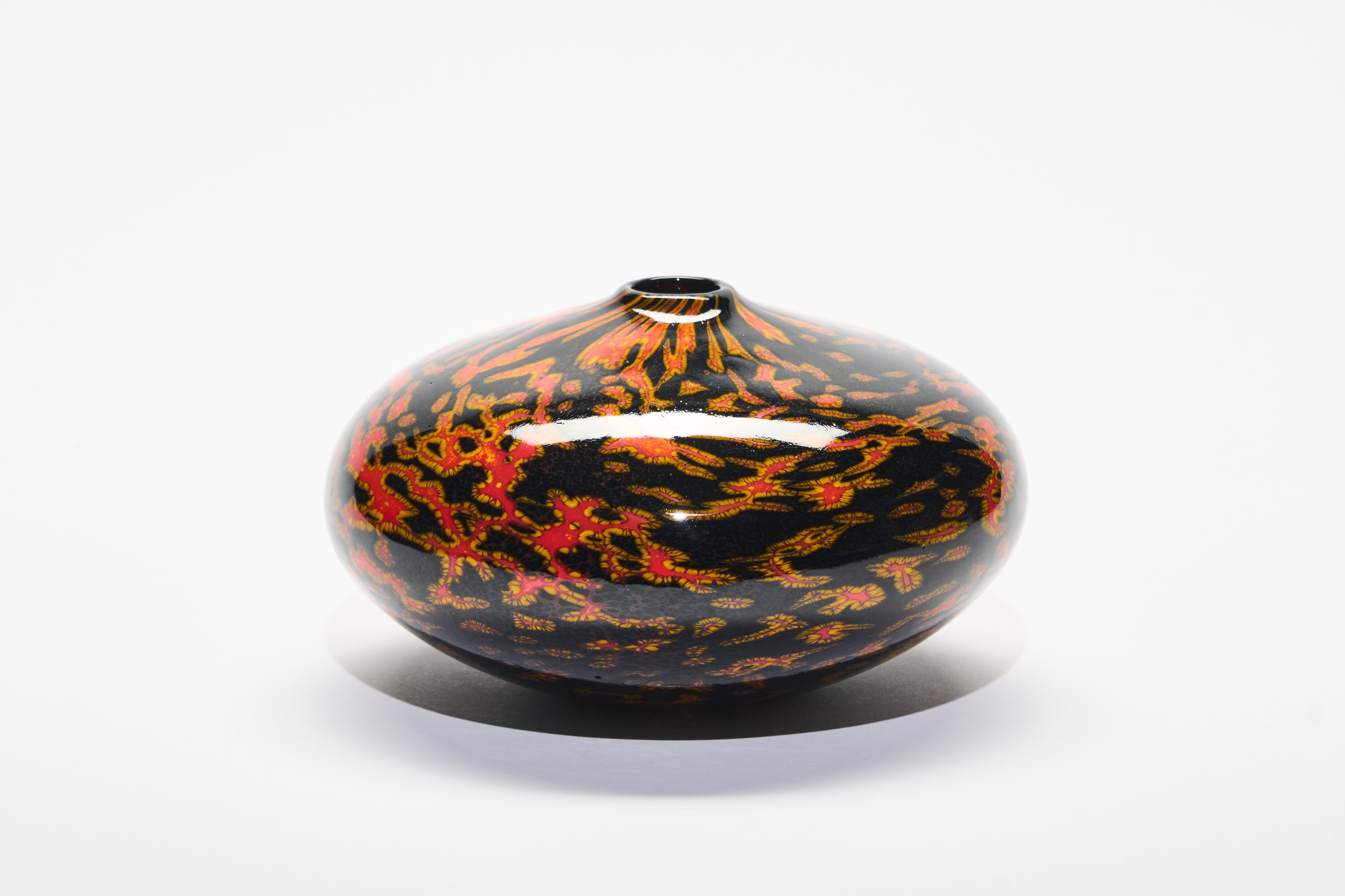 "I’ve always been interested and inspired by Aboriginal Art and I wanted to achieve the feelings evoked by the abstract dotted quality of their painting. In pursuing this, I have arrived at this fierce expression of spots of flying ash and molten lava." - Peter Layton