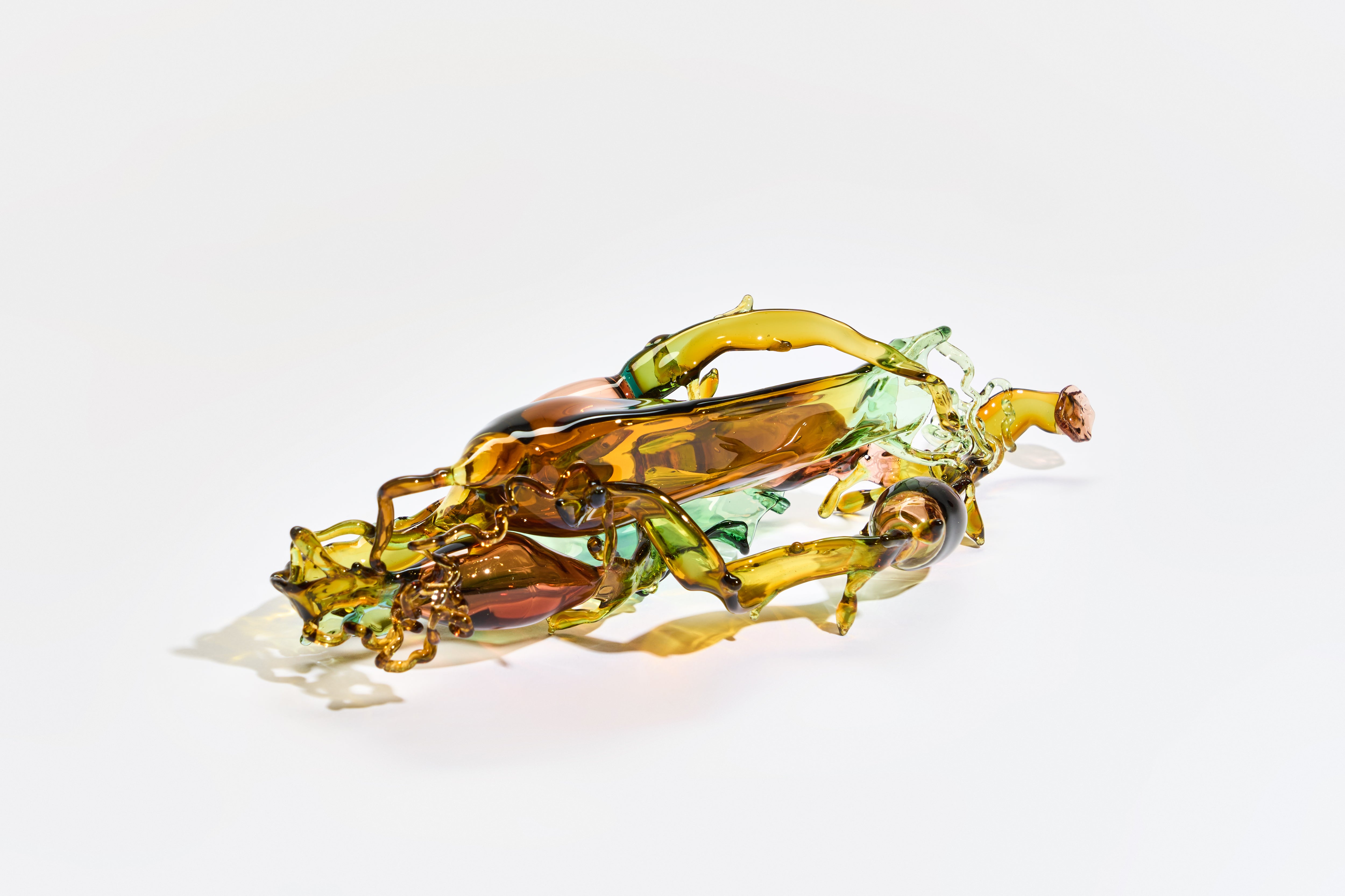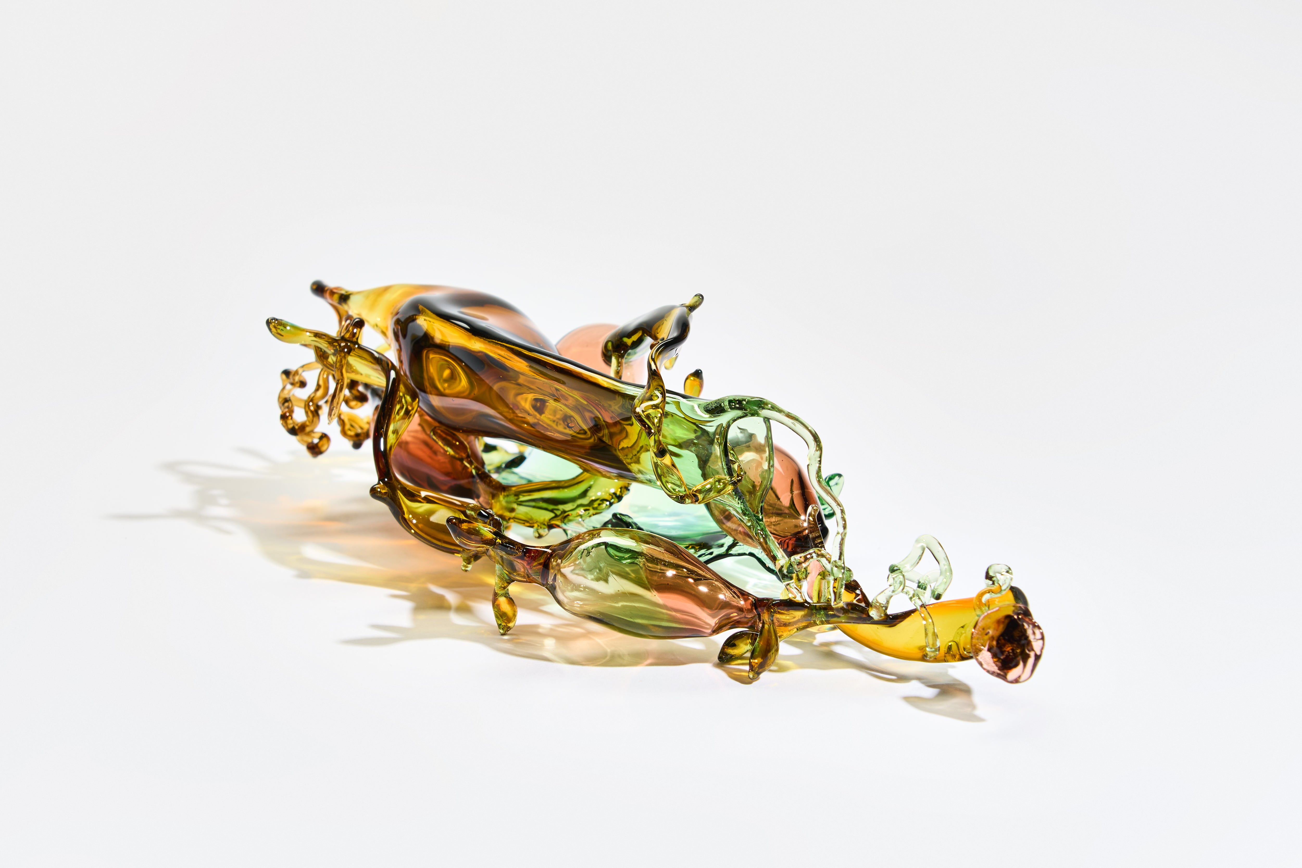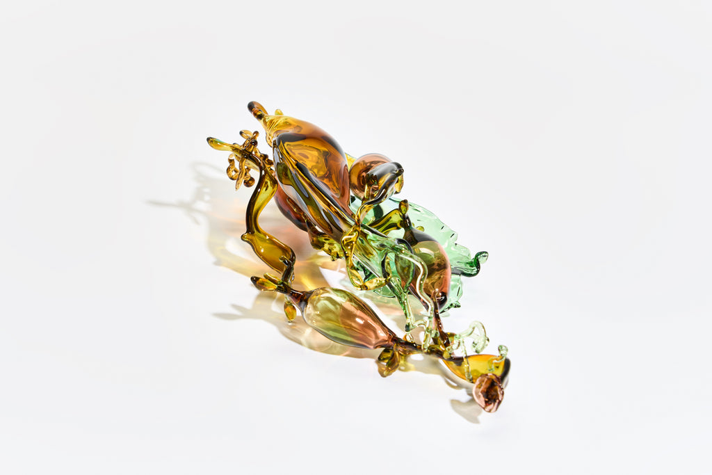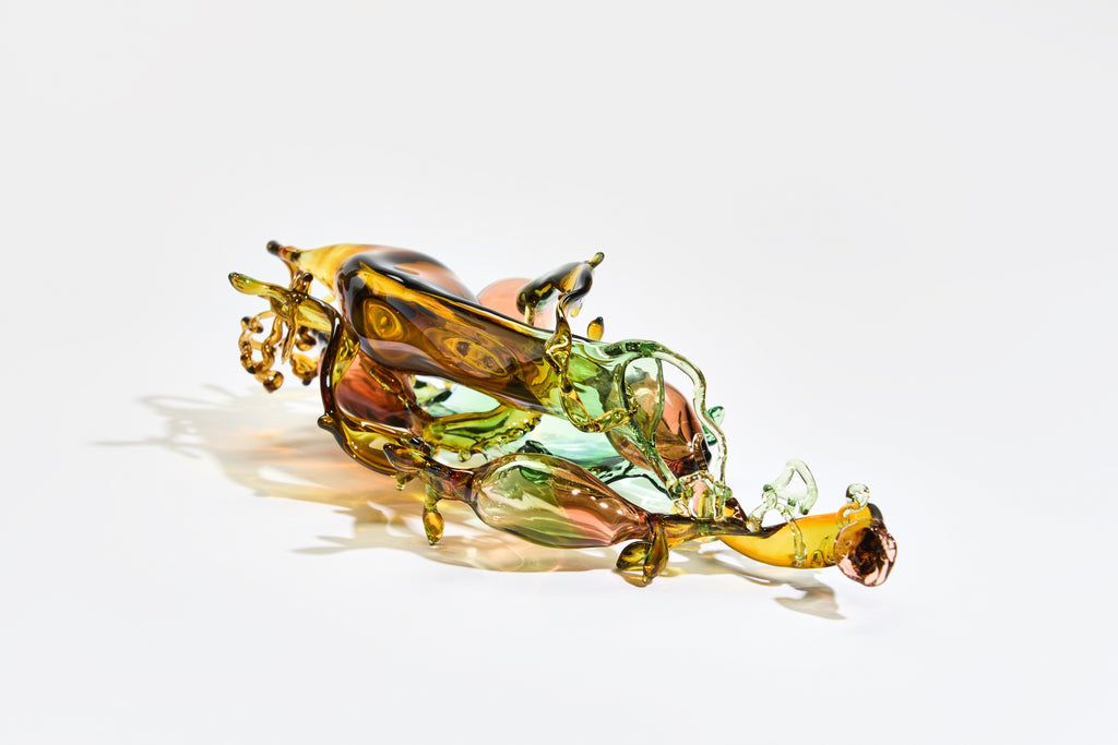 Andrea’s sculptures capture the ethereal beauty of the sea’s hidden treasures. Inspired by mermaid’s purses, drifting seaweed, and dogfish egg cases, her pieces hover between the natural and imagined. Molten glass is transformed into luminous forms that reflect the quiet rhythms of marine life, inviting close observation and contemplation of impermanence, resilience, and the delicate balance of coastal ecosystems.