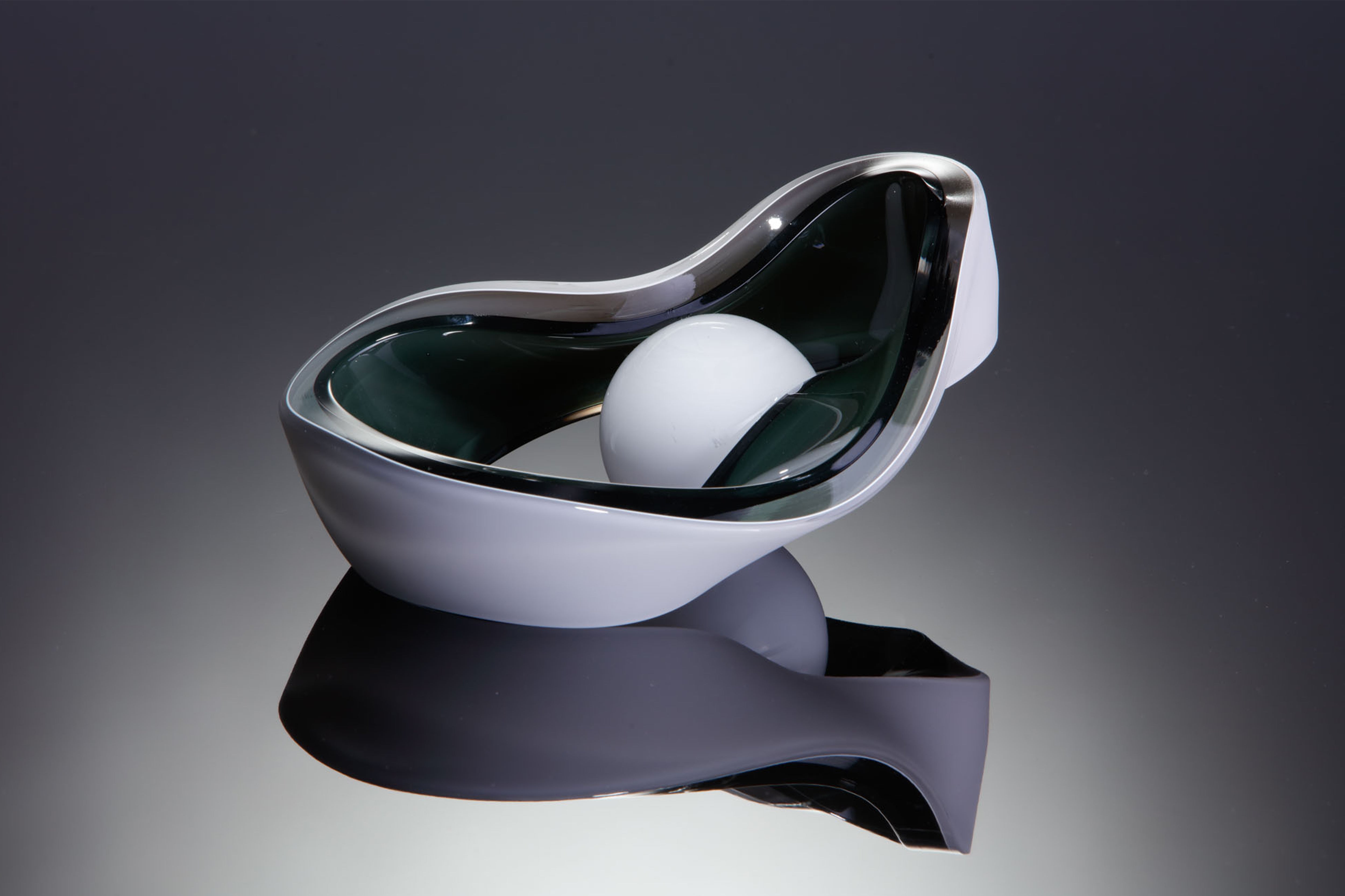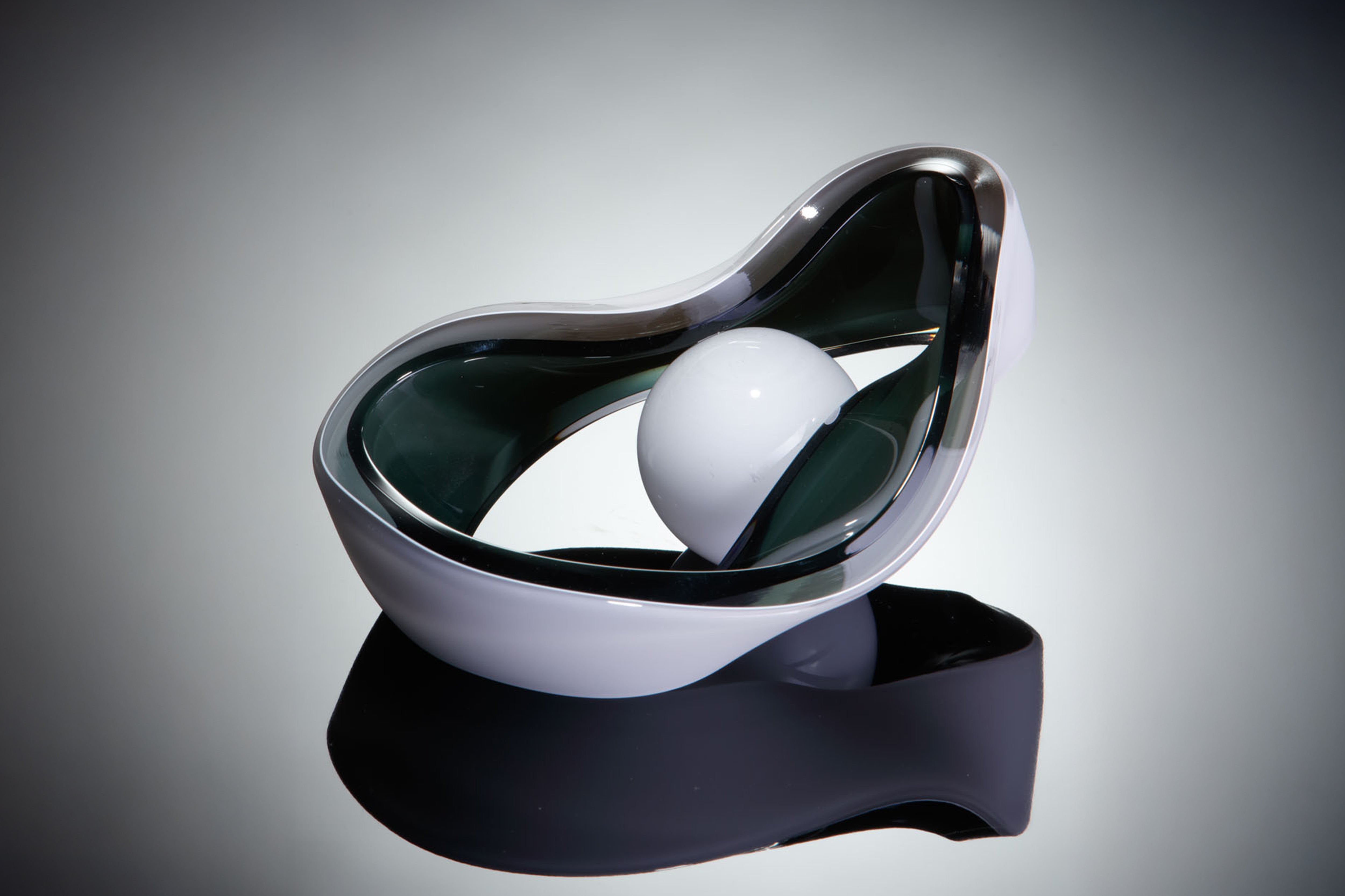 Her Morphology collection celebrates the extraordinary complexity of life, taking inspiration from cells as the building blocks of all living organisms. Working with both hot and cold glass techniques, Sally experiments with line, form, colour, and light to explore interactions between opacity and transparency. Each sculpture balances immediacy with meticulous craft, inviting curiosity and engagement, and revealing the delicate interplay of structure, light, and colour inherent in living systems.
