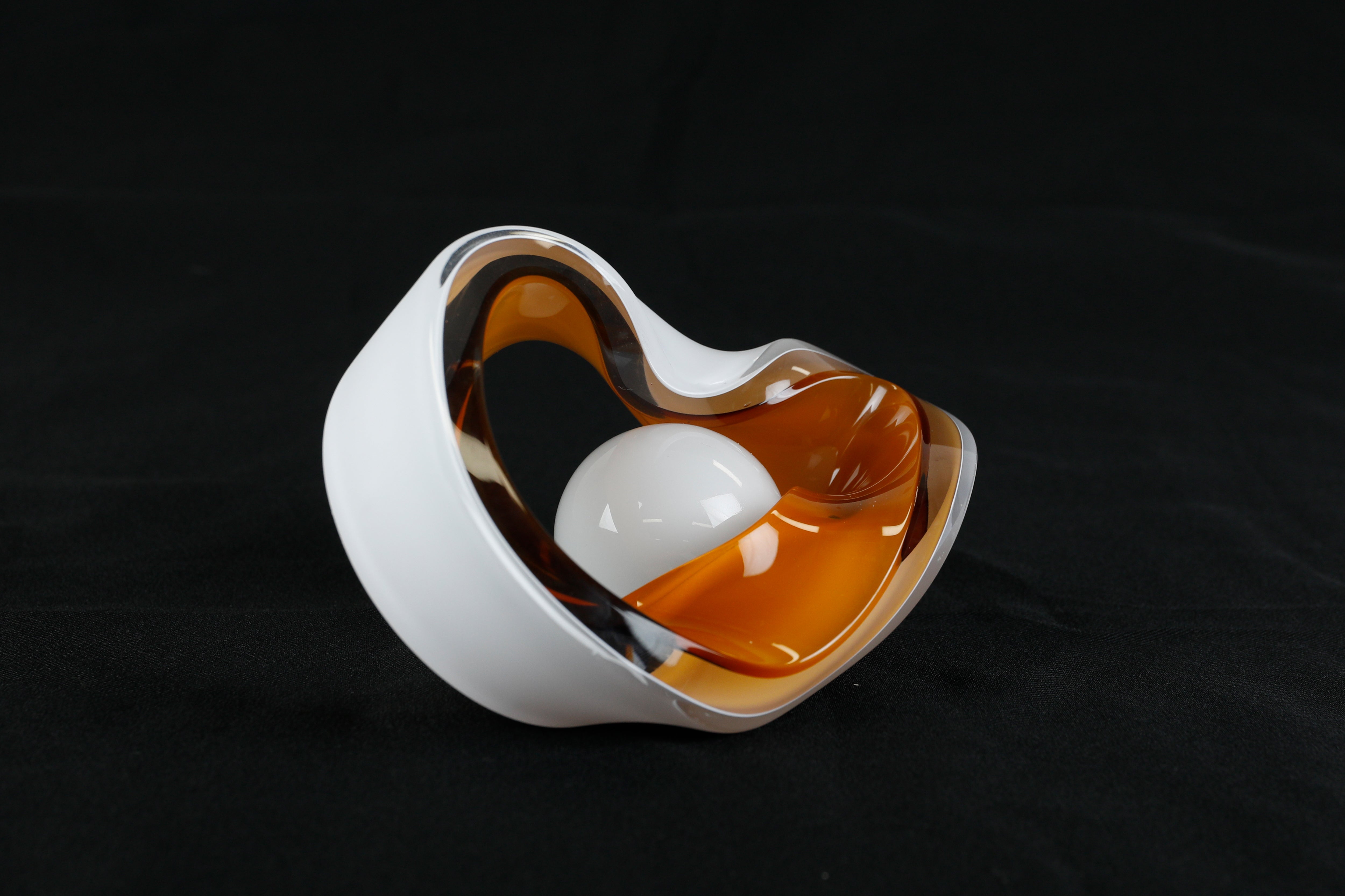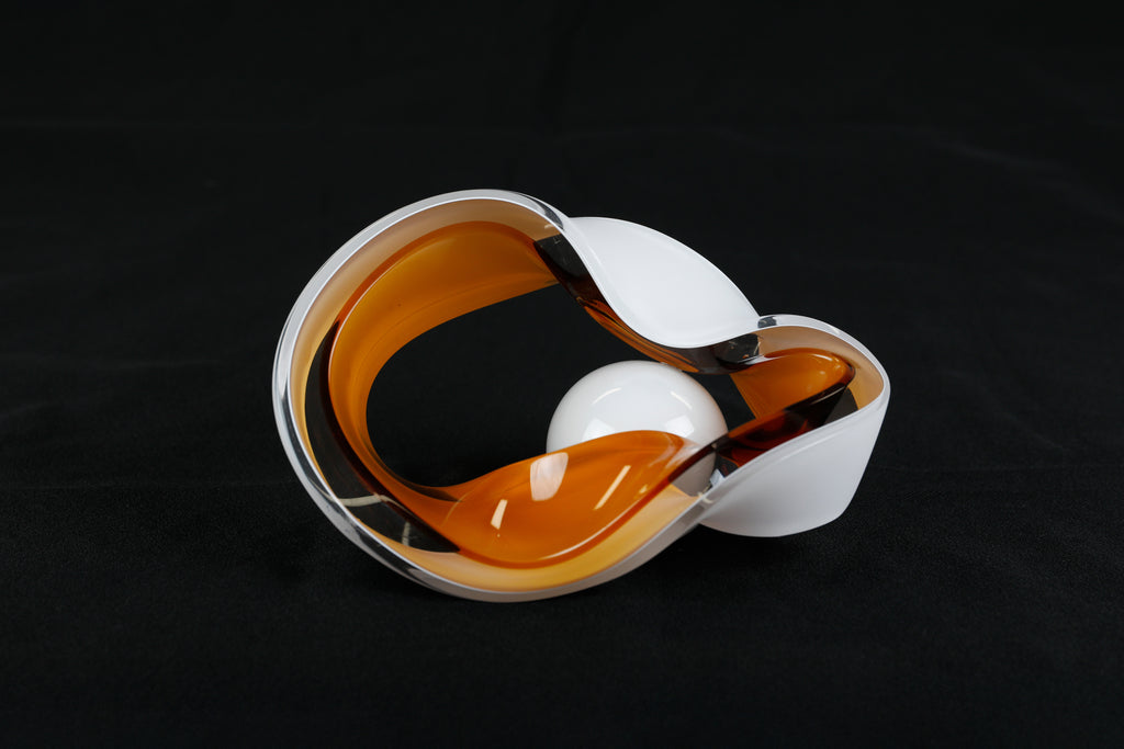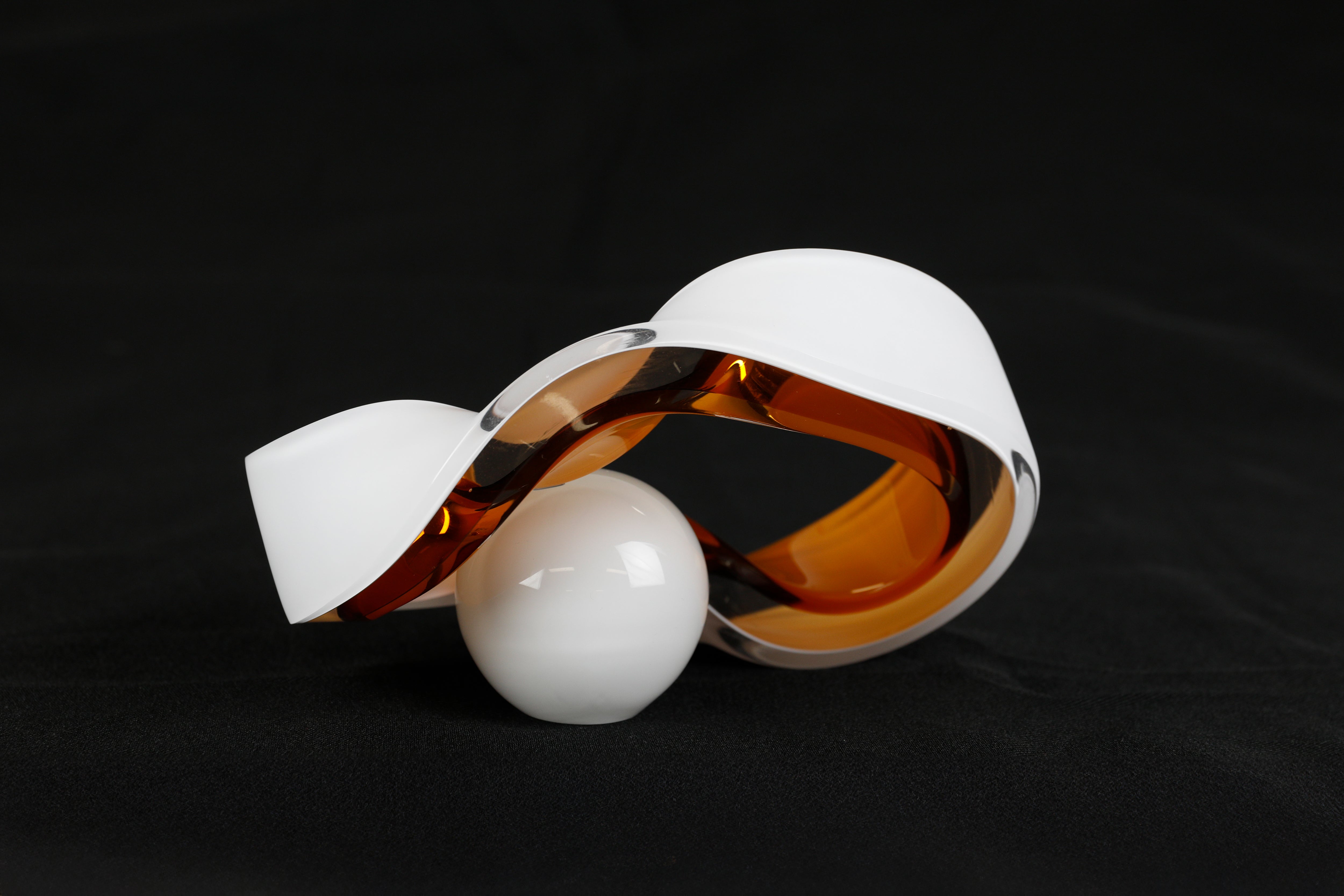 Her Morphology collection celebrates the extraordinary complexity of life, taking inspiration from cells as the building blocks of all living organisms. Working with both hot and cold glass techniques, Sally experiments with line, form, colour, and light to explore interactions between opacity and transparency. Each sculpture balances immediacy with meticulous craft, inviting curiosity and engagement, and revealing the delicate interplay of structure, light, and colour inherent in living systems.