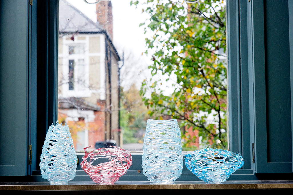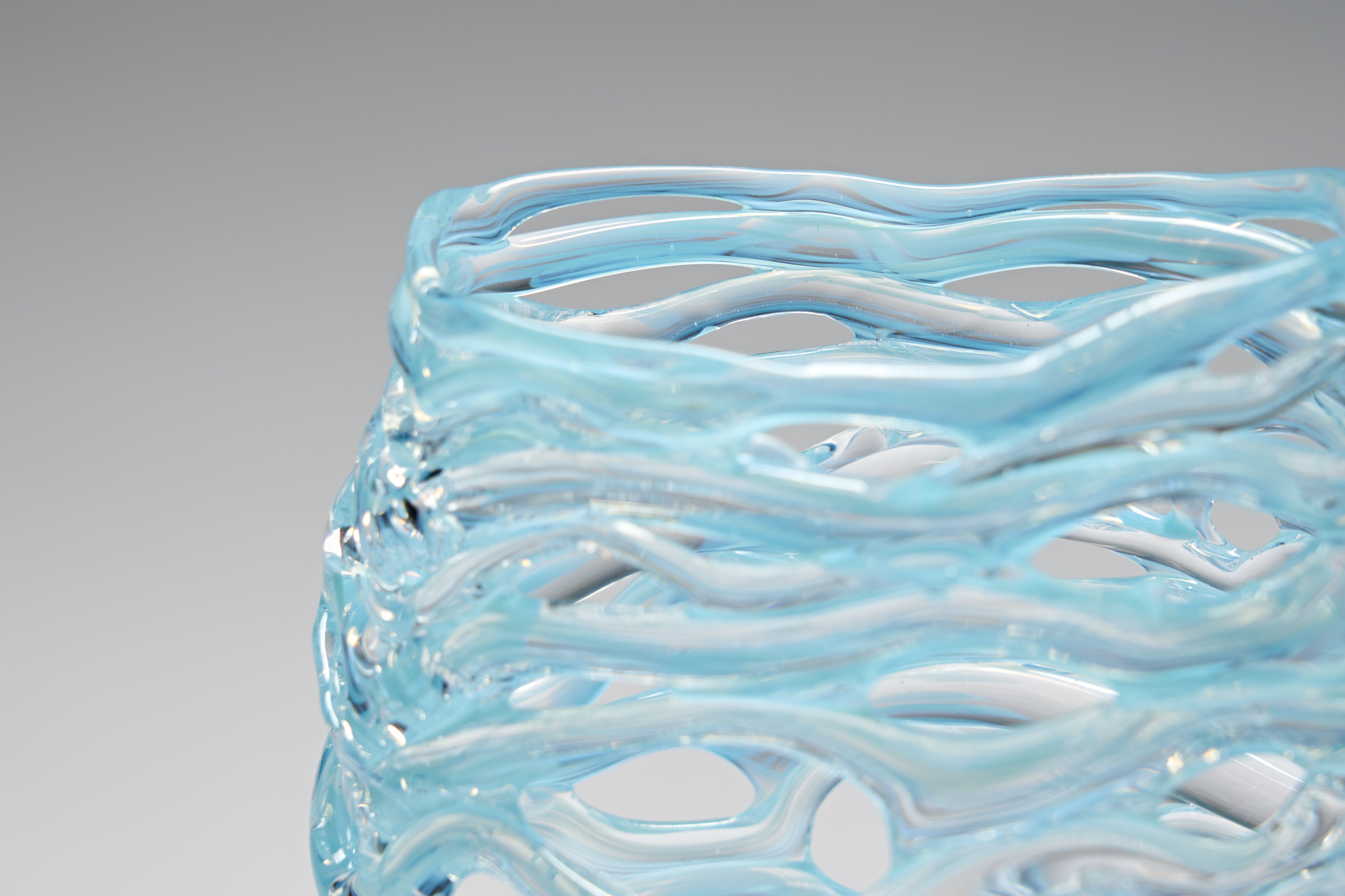 Peter’s Ice Baskets seek to express the inherent magic of glass - its sensuality, fluidity, and ability to capture a fleeting moment in time. Inspired by the theme of ice and snow, these pieces exploit the way glass ‘freezes’ at a precise instant during the cooling process. Each work embodies a delicate balance between control and chance, intention and accident, resulting in objects that convey far more than purely functional or decorative qualities.