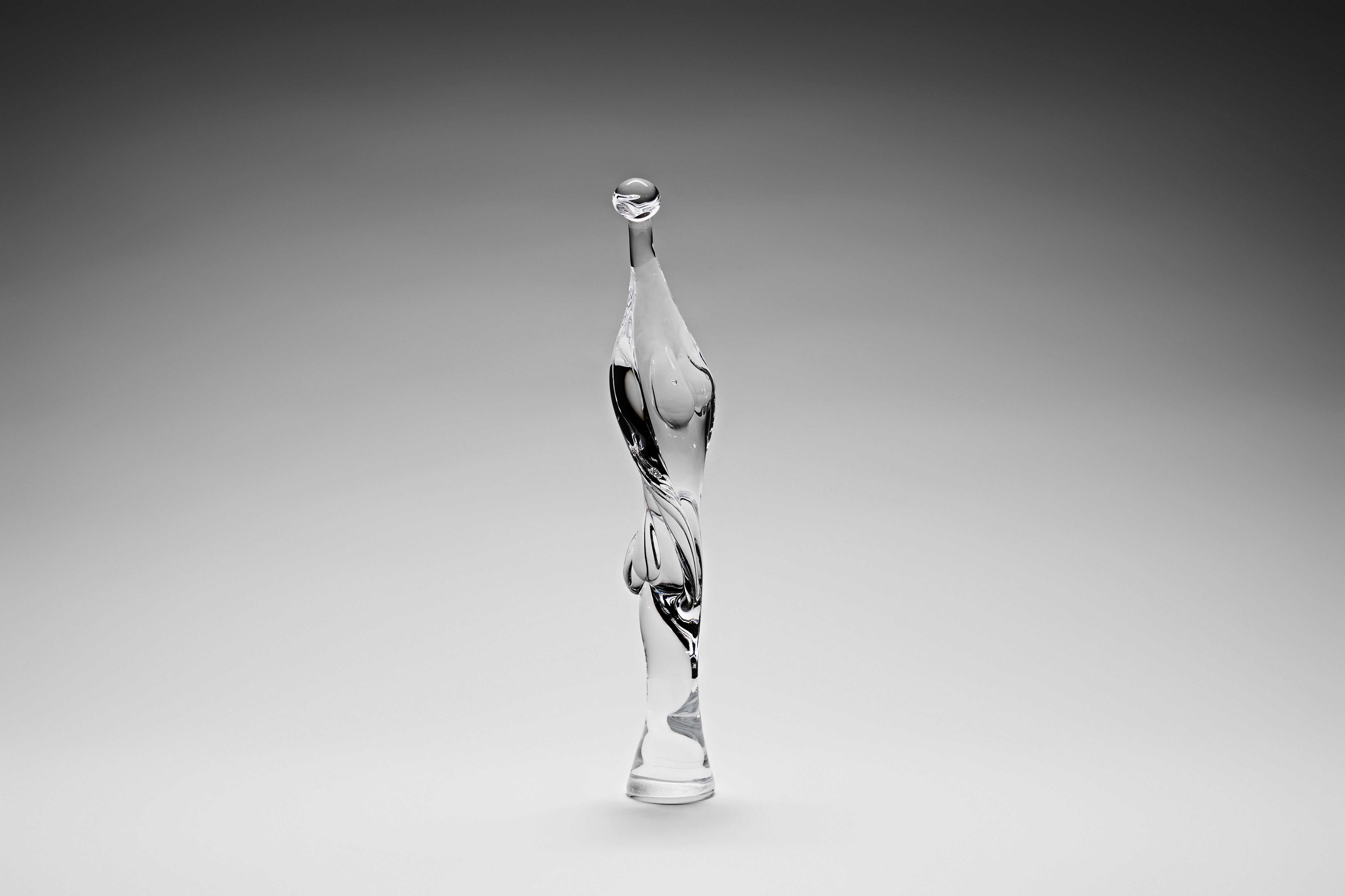 Milos is inspired by the striking white volcanic rock formations of the island, particularly at Sarakiniko Beach, where cliffs have been sculpted over millennia by wind and sea into smooth, otherworldly shapes. Close to Folegandros, Milos also holds a rich cultural heritage as the site where the Venus de Milo was discovered. Peter has long admired Cycladic art, with its elegant, minimalist figurines, and in this series he makes his first exploration of figurative glass.