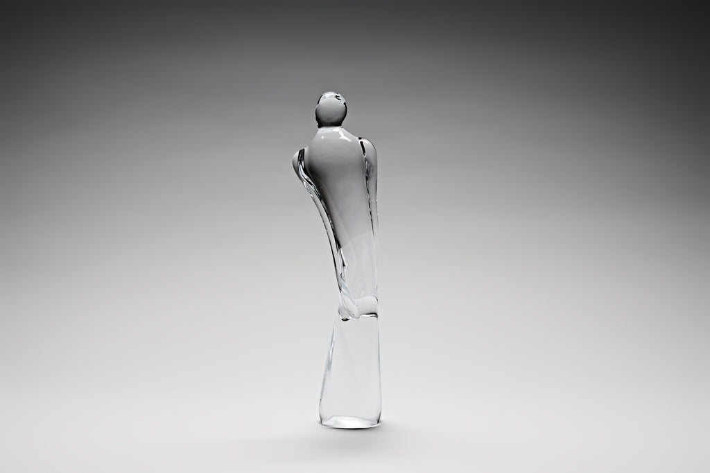 Milos is inspired by the striking white volcanic rock formations of the island, particularly at Sarakiniko Beach, where cliffs have been sculpted over millennia by wind and sea into smooth, otherworldly shapes. Close to Folegandros, Milos also holds a rich cultural heritage as the site where the Venus de Milo was discovered. Peter has long admired Cycladic art, with its elegant, minimalist figurines, and in this series he makes his first exploration of figurative glass.