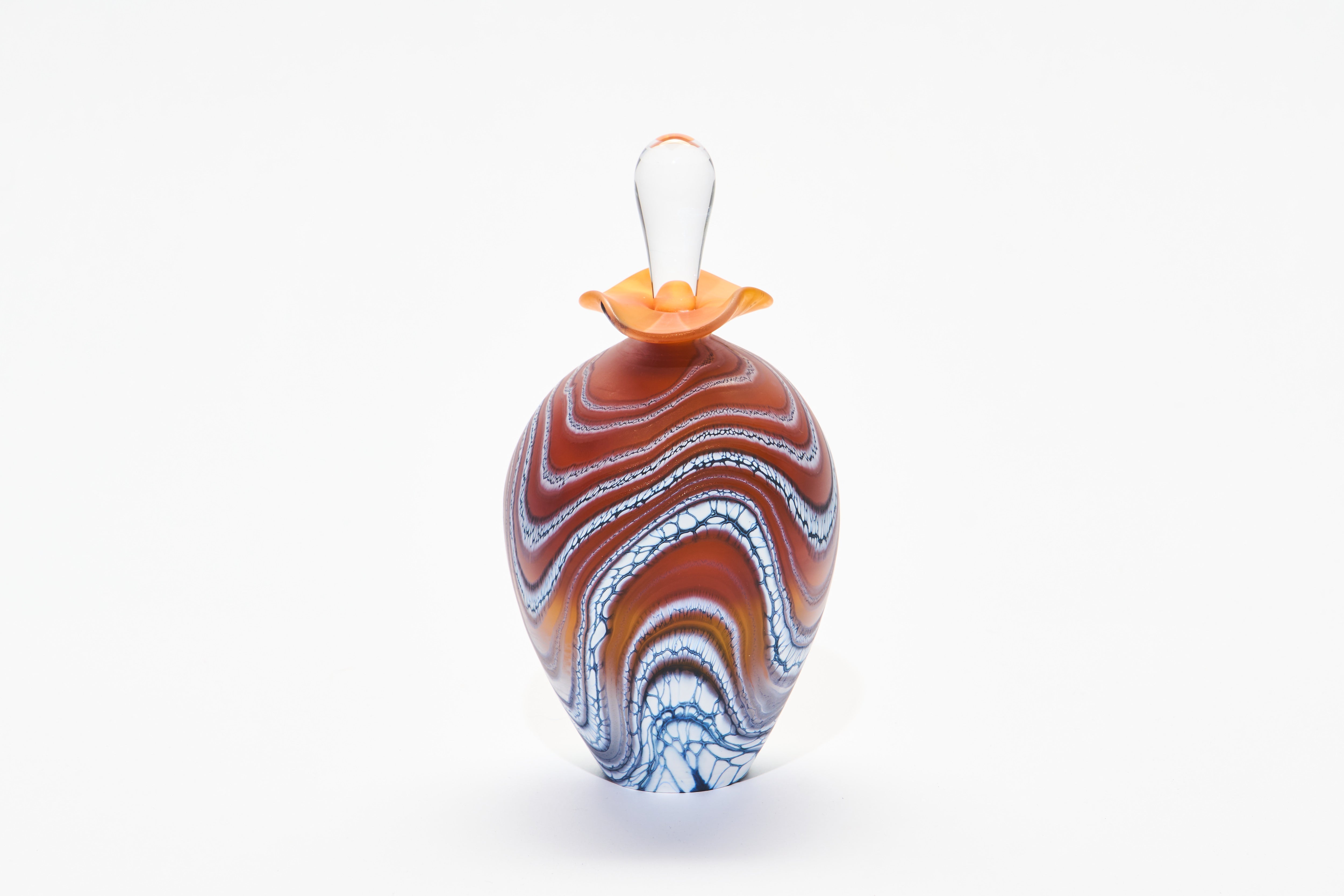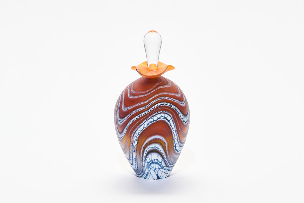 Our freeblown and individually signed perfume bottles make exquisite gifts and have been carefully selected to feature online. The ovoid etched glass Amber Glacier perfume bottle creates striking visual movement from every angle.