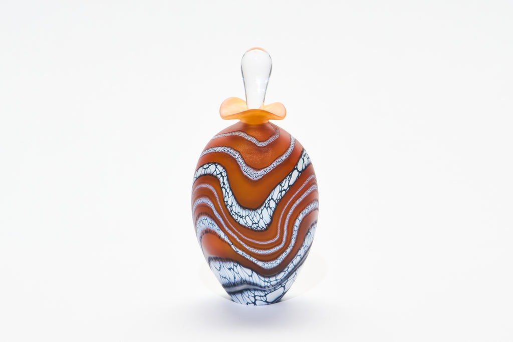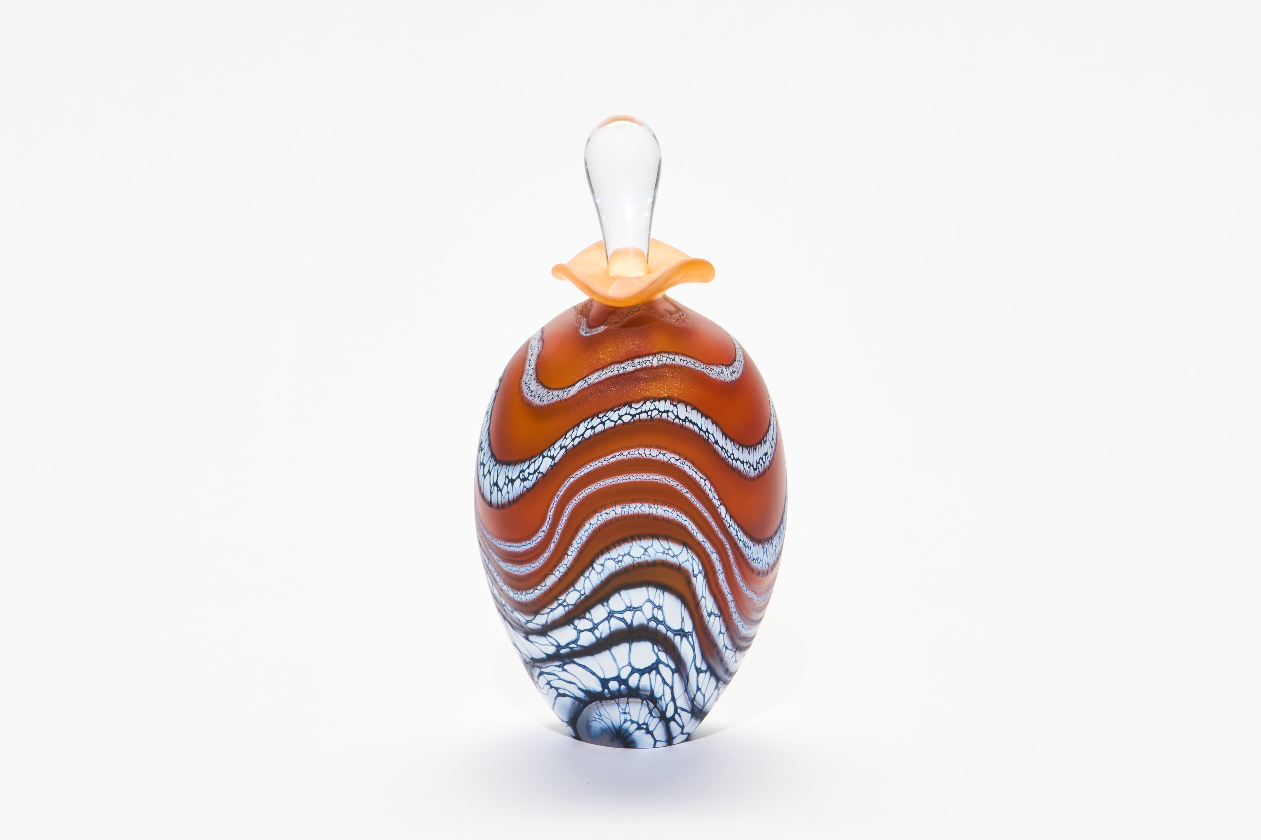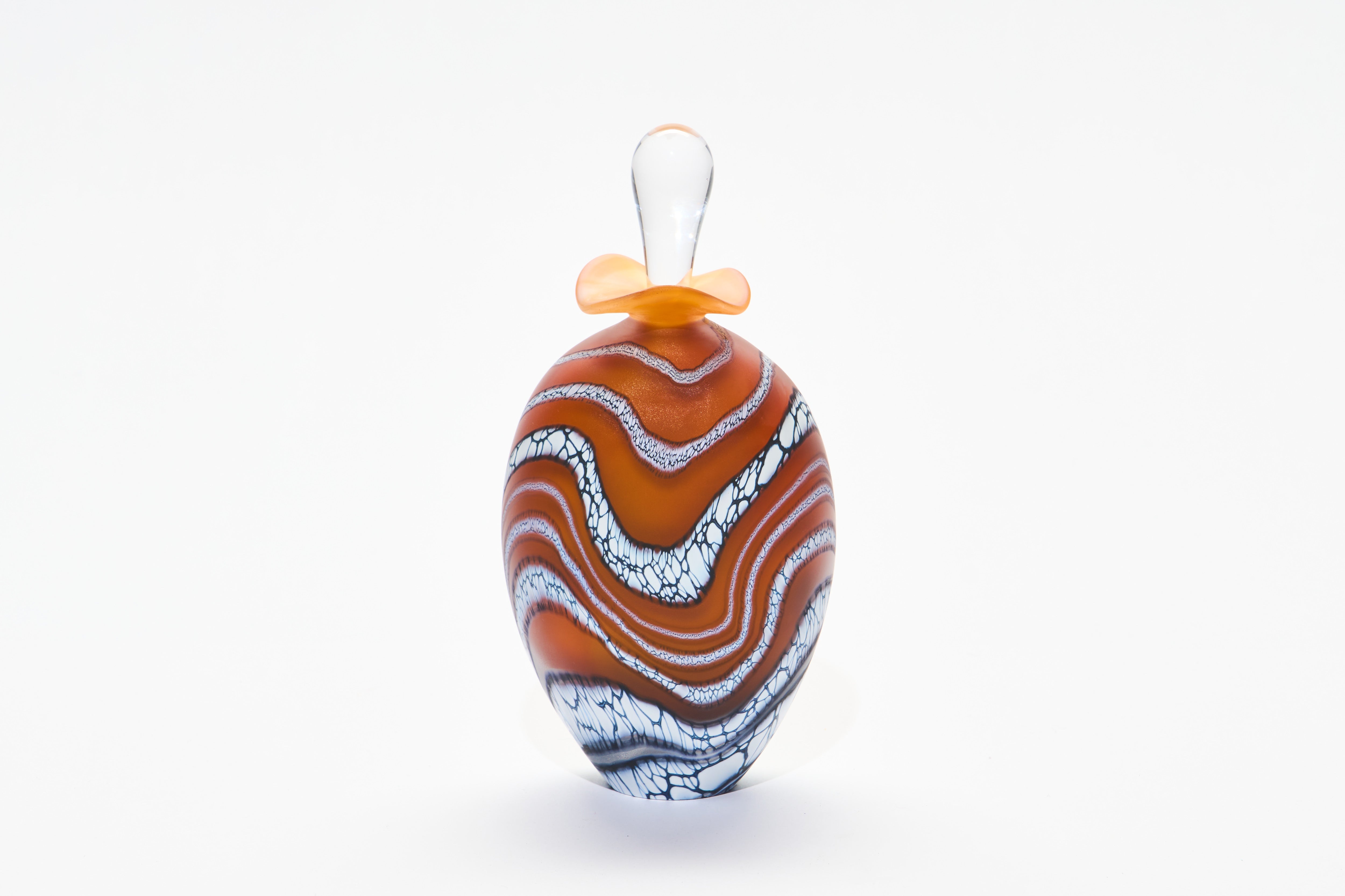 Our freeblown and individually signed perfume bottles make exquisite gifts and have been carefully selected to feature online. The tall etched glass Amber Glacier perfume bottle is sophisticated and sculptural in form, highlighting the rich colours.