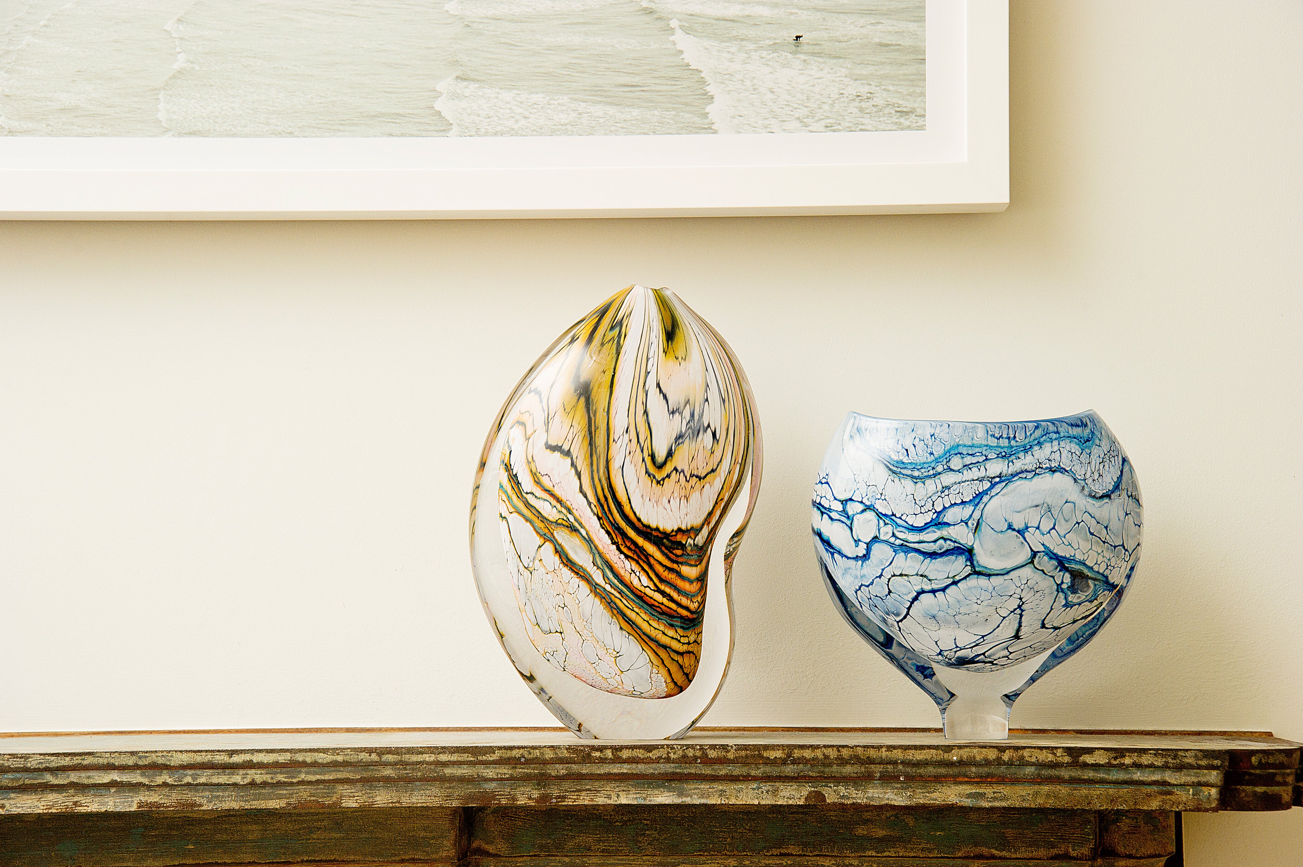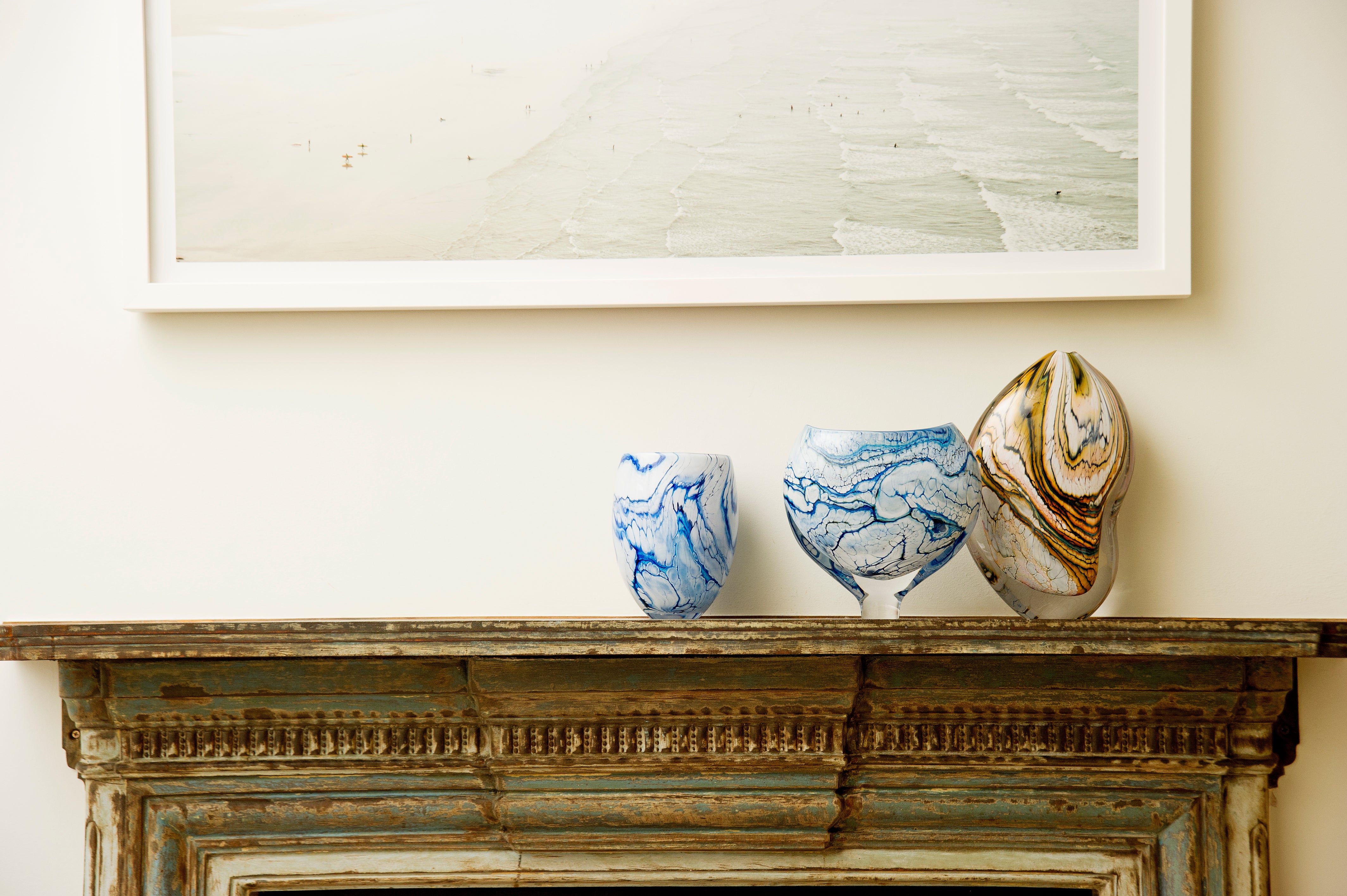 Clouds of Jupiter is inspired by the latest images from the Hubble Space Telescope, capturing the swirling, multicoloured gases and dynamic cloud formations of the planet. Tim explores fluid movement, layered colour, and subtle translucency to evoke the energy and turbulence of Jupiter’s atmosphere. Each piece reflects the motion, depth, and scale of these alien skies, inviting the viewer to experience both the beauty of the unknown and the interplay of colour, light, and form that defines Tim’s sculptural language.