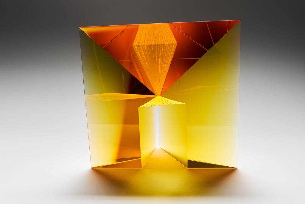 Tomáš is rapidly gaining international recognition for his striking geometric glass sculptures that blend polished and matte surfaces. His masterful technique reveals intricate internal and external contours, resulting in visually dynamic compositions that push the boundaries of contemporary glass art. Tomáš finds inspiration in the shapes and imagery of his everyday surroundings and experiences. Light, in particular, serves as the driving force behind his artistic expression with glass. By harnessing light's interaction with form and surface texture, he produces objects that challenge perception through reflection and refraction.