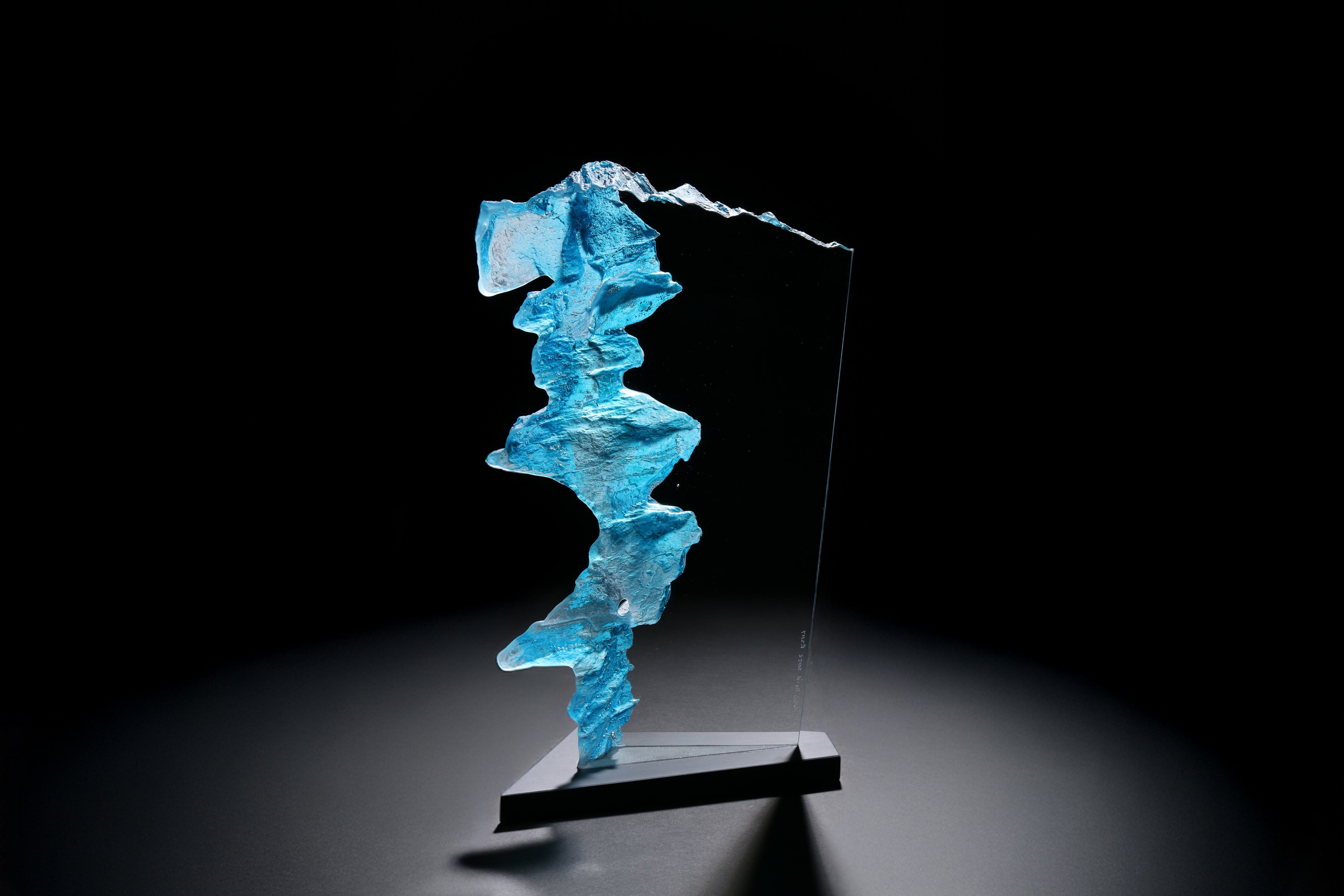 Colin’s optical glass pieces reference place, with textures cast from rocks and natural forms found in wild, often remote locations. Using a clean, non-invasive process in the field, he develops these impressions into sculptural forms in the studio. The high-quality optical glass gives remarkable clarity, creating internal reflections and refractions of the textures. Each piece is carefully annealed, cold-worked, ground, and polished to its refined final state.