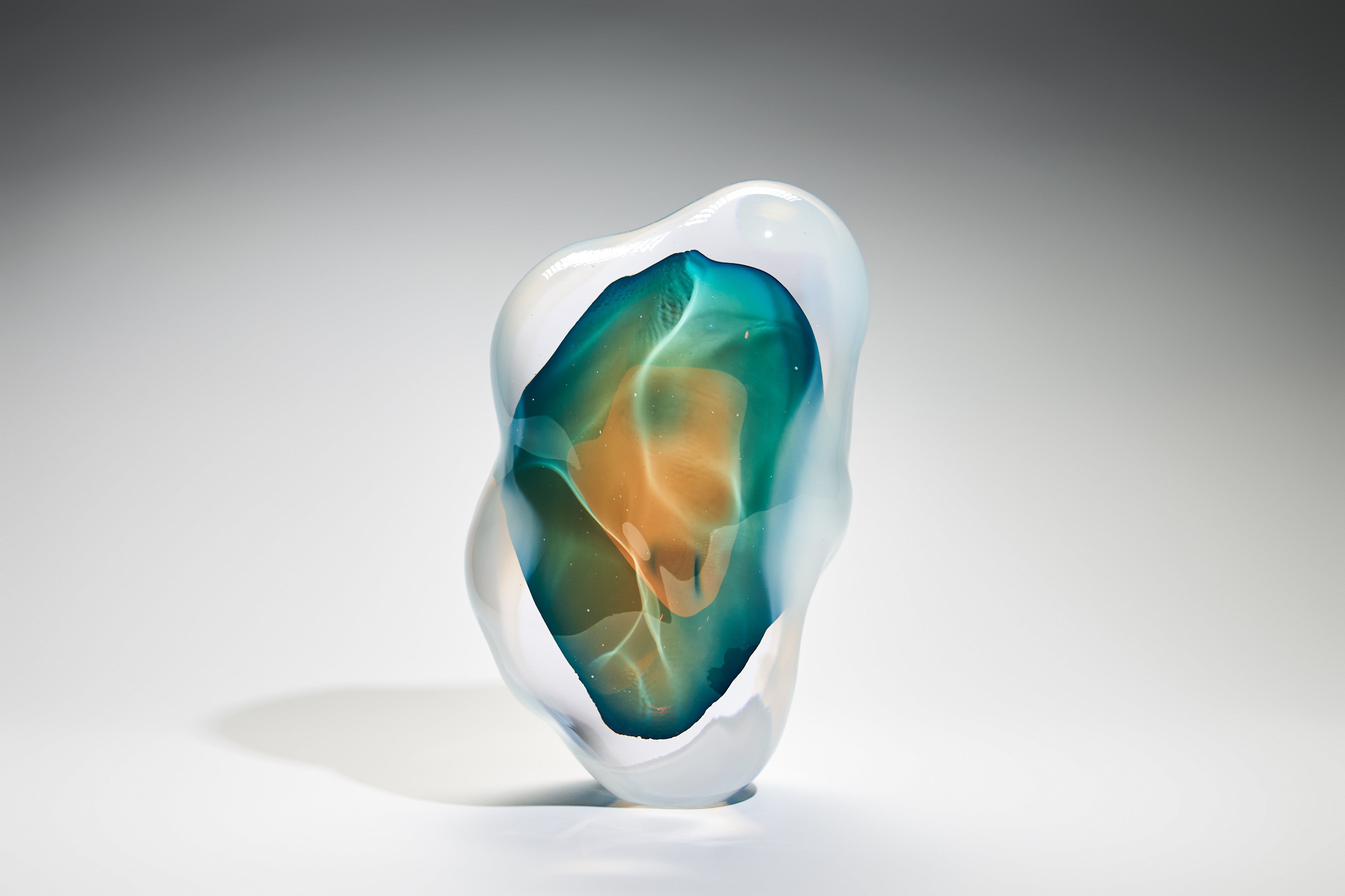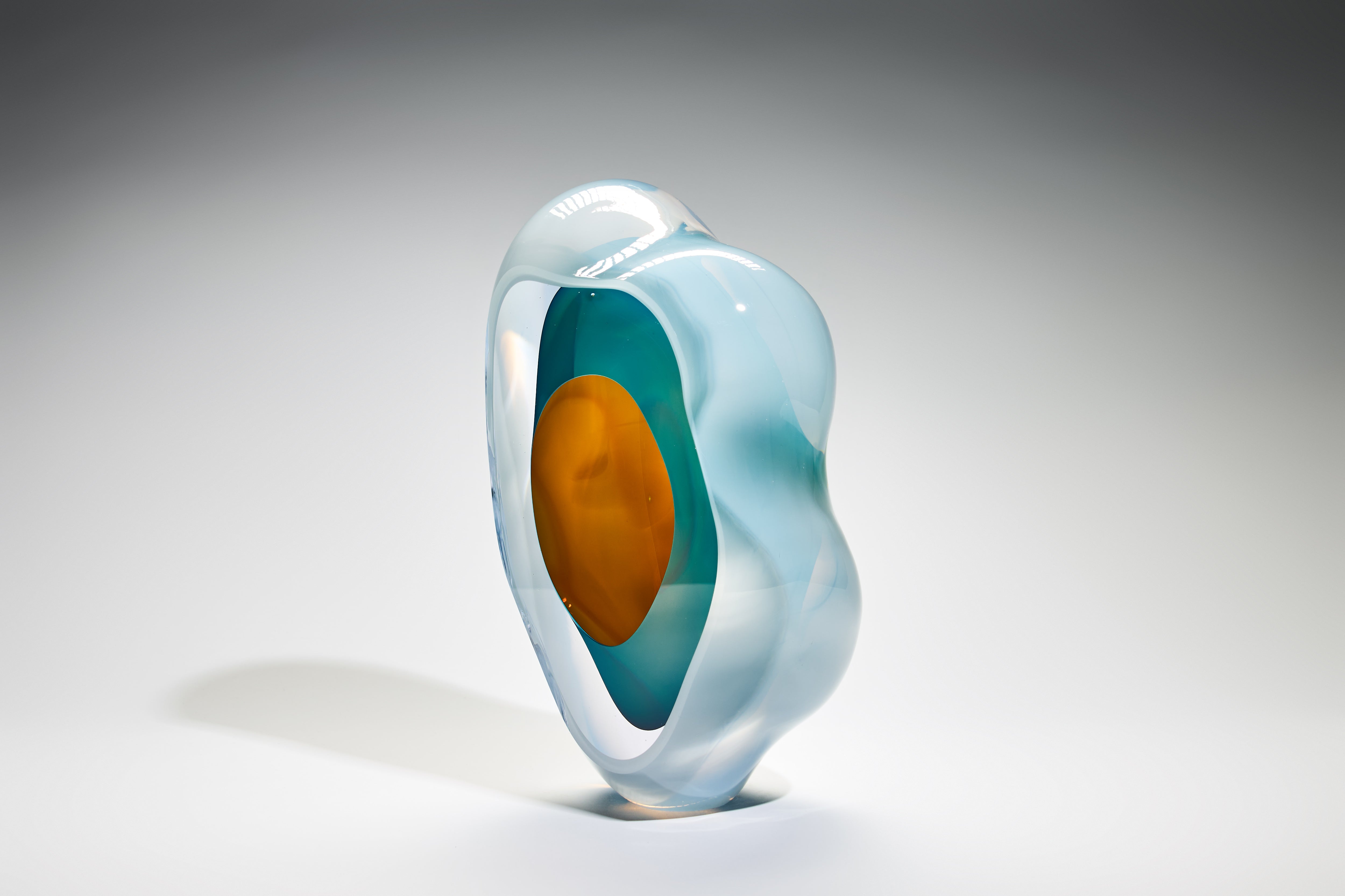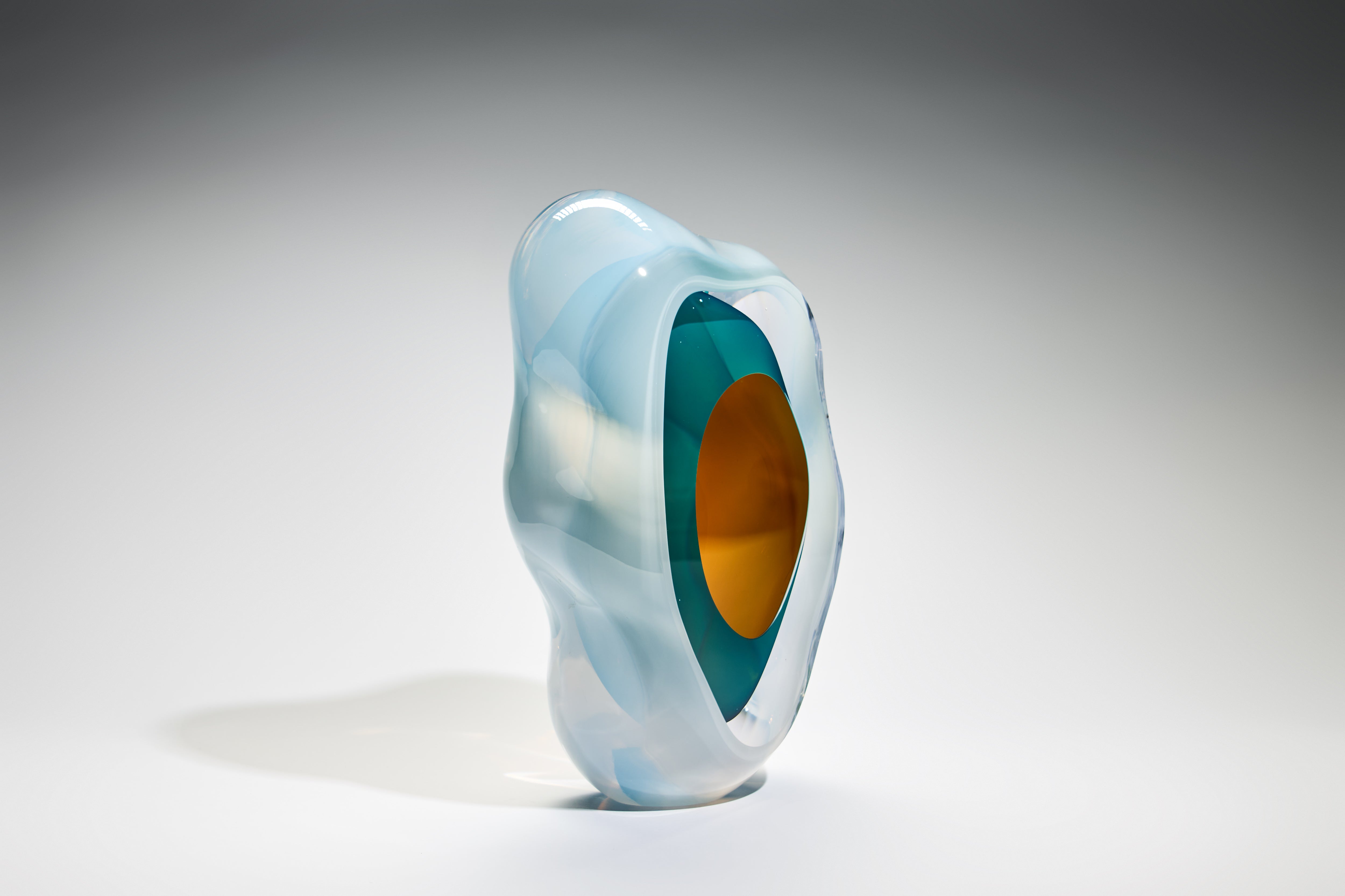 Peter thinks clouds are among the most beautiful things in the natural world - endlessly changing, variable and fascinating. Their delicate colour, often glorious and at times ominous, together with infinitely metamorphic shape and movement, can lend a serene or tumultuous dimension to their vaporous existence. Attempting to convey their essence in glass is a daunting challenge and quite absurd.